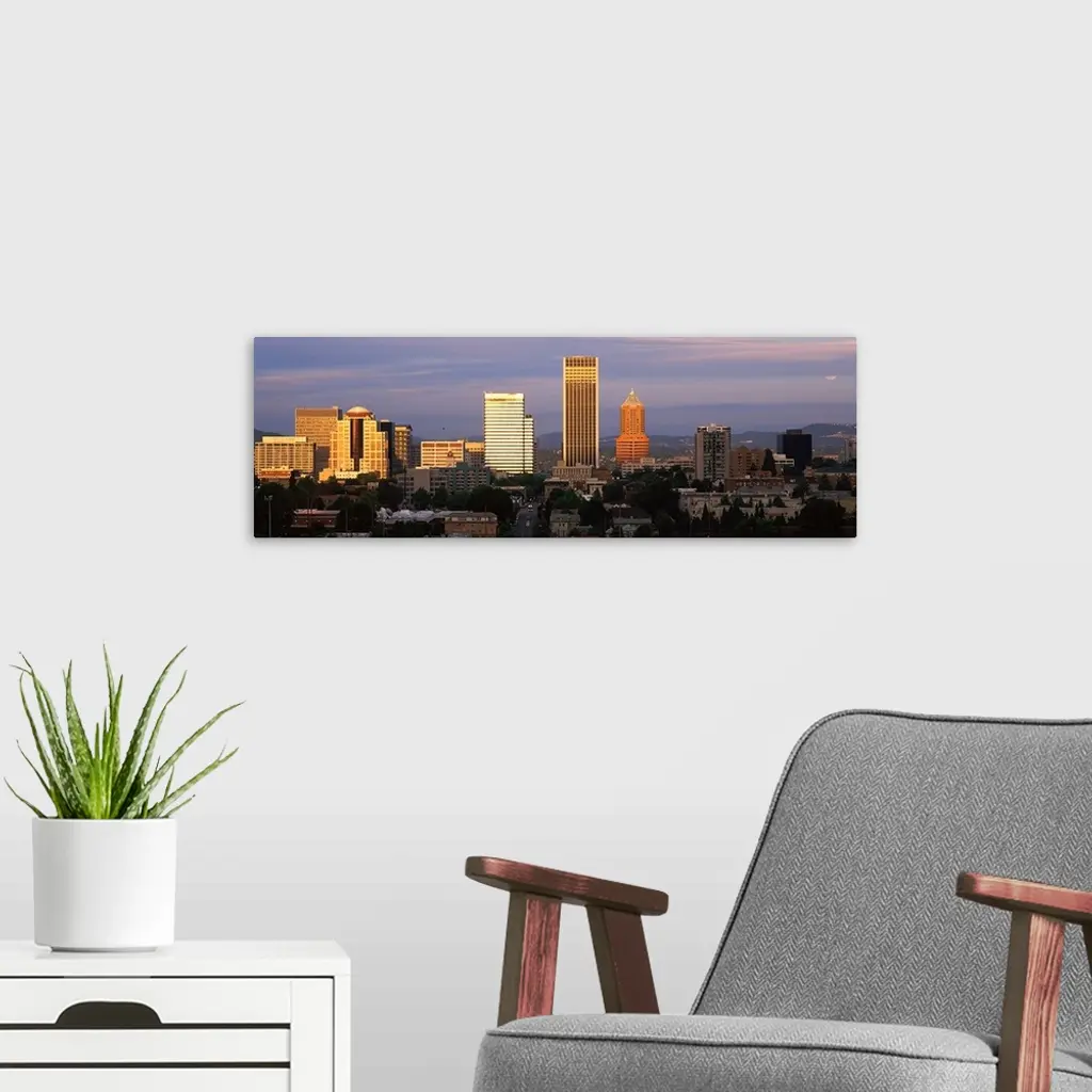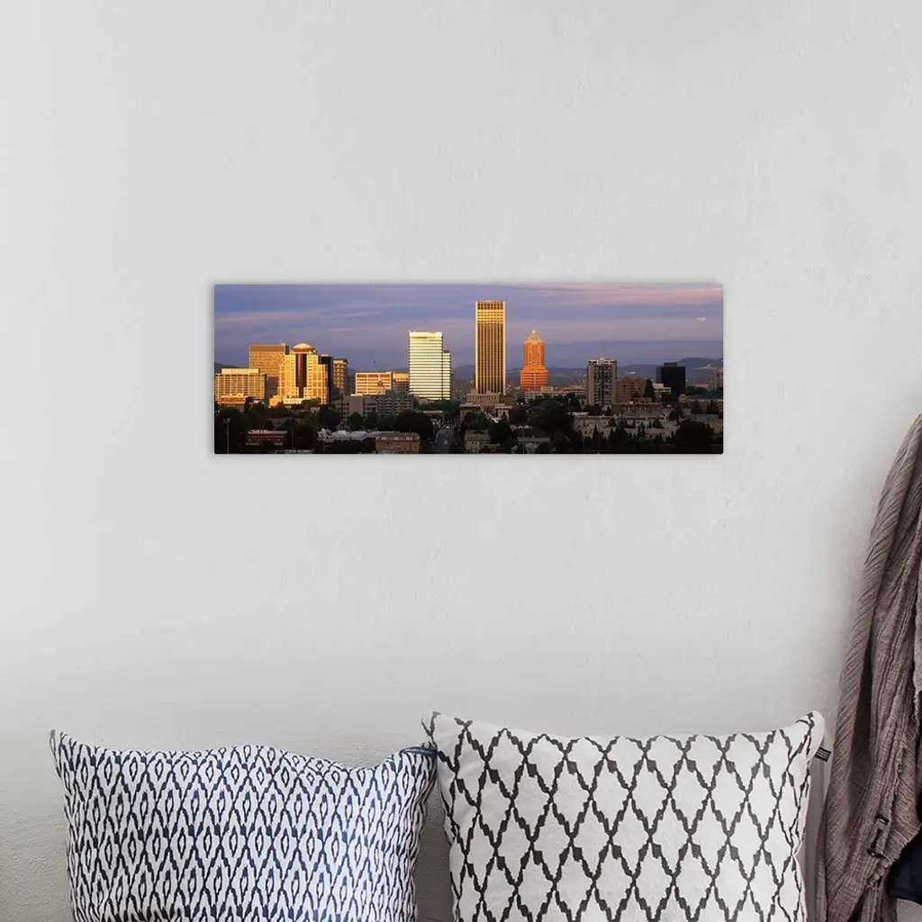 Cityscape at sunset, Portland, Multnomah County, Oregon, wall art for home and office decor. Discover canvas art prints, photos, mural, big canvas art and framed wall art in GreatBigCanvas.com's varied collections.