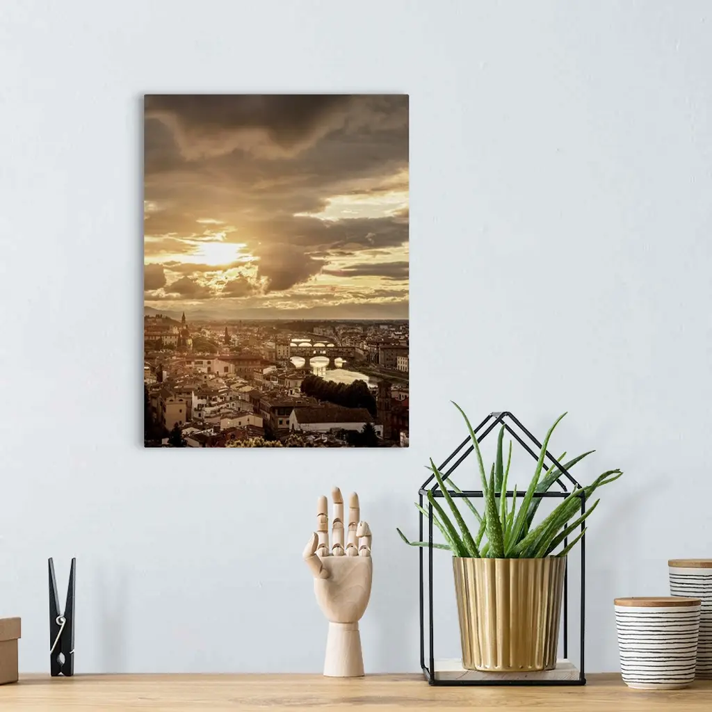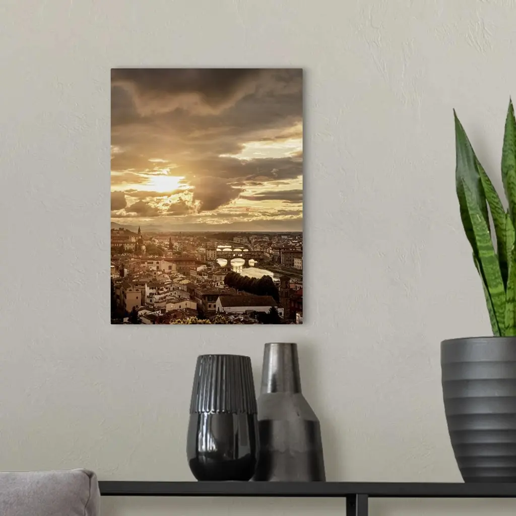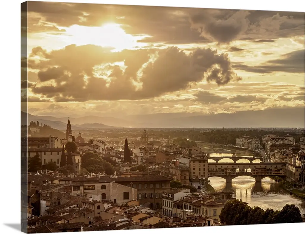 Cityscape With Ponte Vecchio And Arno River At Sunset, Florence, Tuscany, Italy