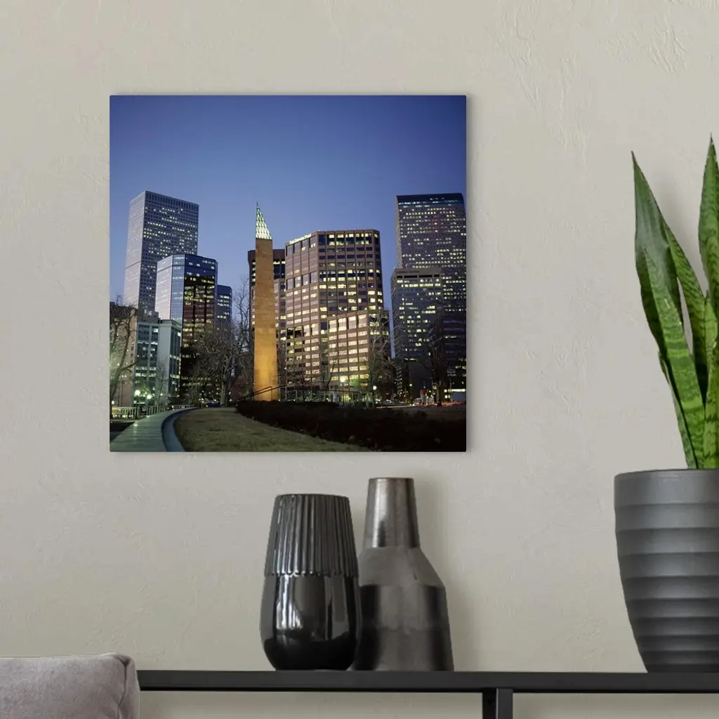 Civic Center Plaza skyscrapers in the evening, Denver, Colorado, USA wall art for home and office decor. Discover canvas art prints, photos, mural, big canvas art and framed wall art in GreatBigCanvas.com's varied collections.
