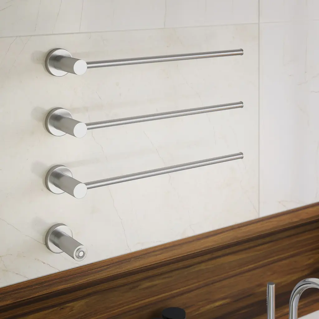 Discover the radiant elegance of the Claire collection, where ethereal designs elevate the ambiance of any setting. Indulge in the luxury of toasty towels with our sleek towel warmers adding a touch of comfort and sophistication to your bathroom experience. Offered in chrome.