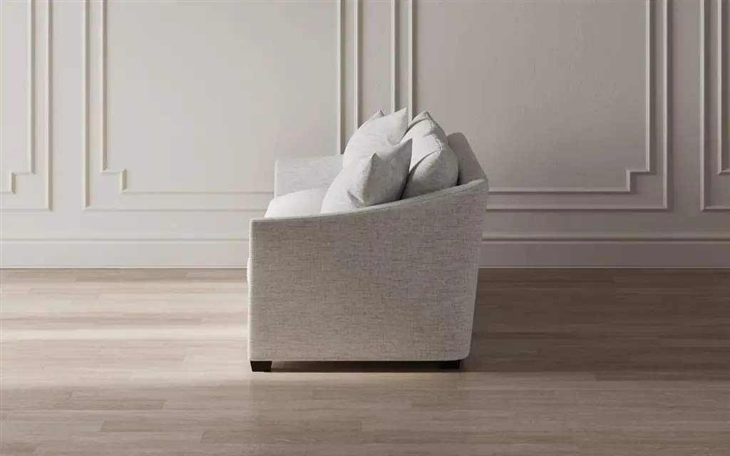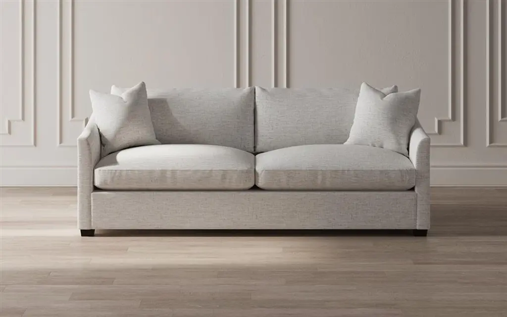 At once timeless and understated, the 89” Clairmont two-cushion sofa lends a charming touch to any modern or traditional space. Set atop tapered wood legs, the inviting silhouette includes softly sloped arms, gently curved back corners, and cozy throw pillows. Soft yet supportive with a slightly firm sit, the low-maintenance seat cushions feature a foam core surrounded by plush fiber fill. Choose from a variety of upholstery options, including linen, velvet, and performance fabrics.