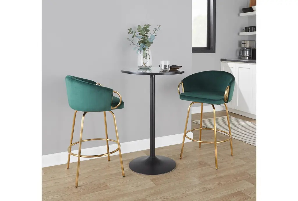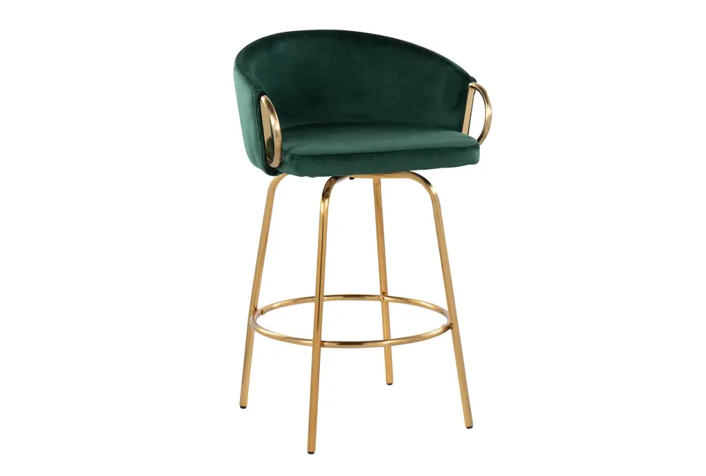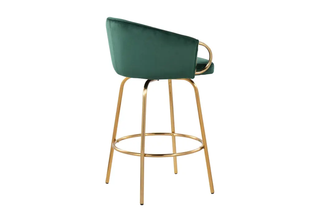 The Clarity 26" Emerald Velvet Metal Counter Height Stool Set of 2 is the perfect addition to your dining room or kitchen. These stools feature a stunning green velvet upholstery that adds a touch of sophistication to any space. The curved shape and tall design provide comfort and style for your seating needs.