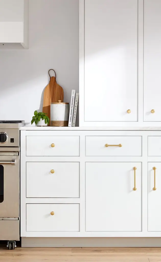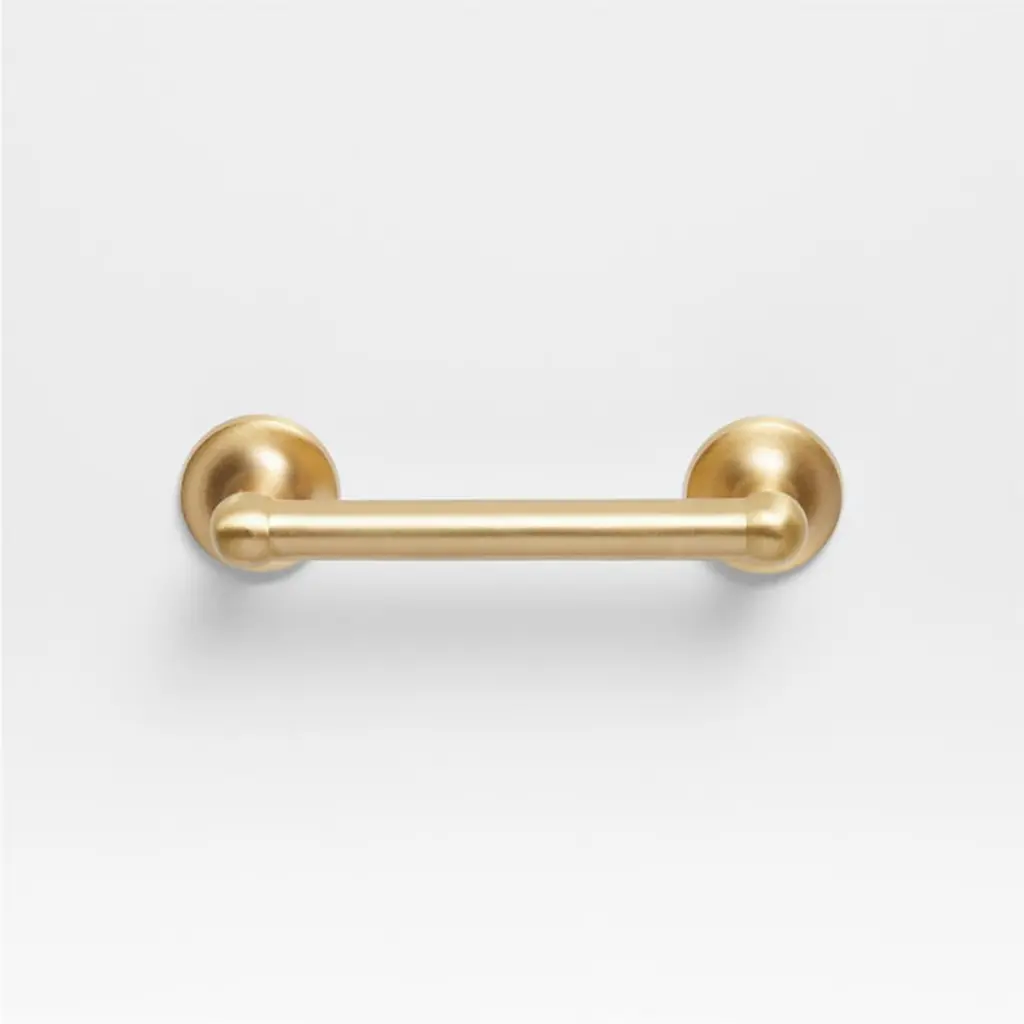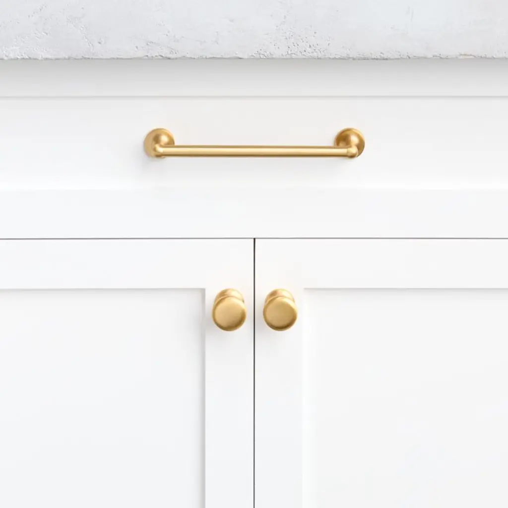 Sometimes it's the small things that pull a room together. That's why we've designed a hardware collection with modern silhouettes and a touch of tradition to give your kitchen and bathroom that perfect finishing touch. We named this three-inch bar pull Classic for a reasona round bar with the subtlest of ball finials is secured by clean rosette bases for a timeless look. Crafted of brass, the bar pull has a slim profile and a gleaming brushed finish. Hardware is included to make it easy to refresh the look of dresser drawers, cabinet doors and vanities.