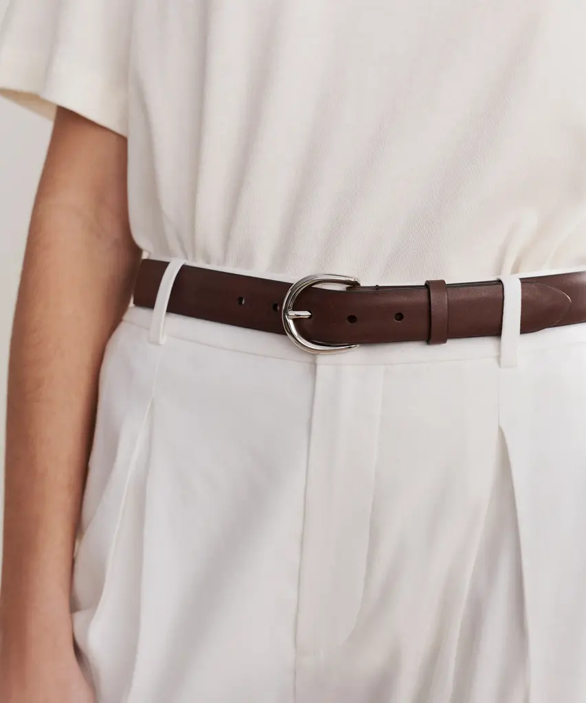 Classic Belt ChocolateIn buttery nappa leather, this timeless addition fits seamlessly in your everyday uniform.Nappa leather.Made in Italy.Brass hardware.