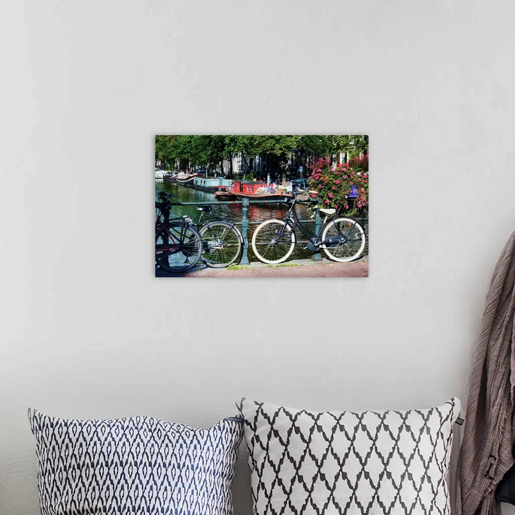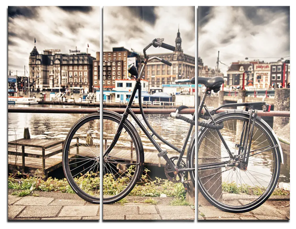 Classic bicycles on a bridge, Amsterdam, Netherlands.