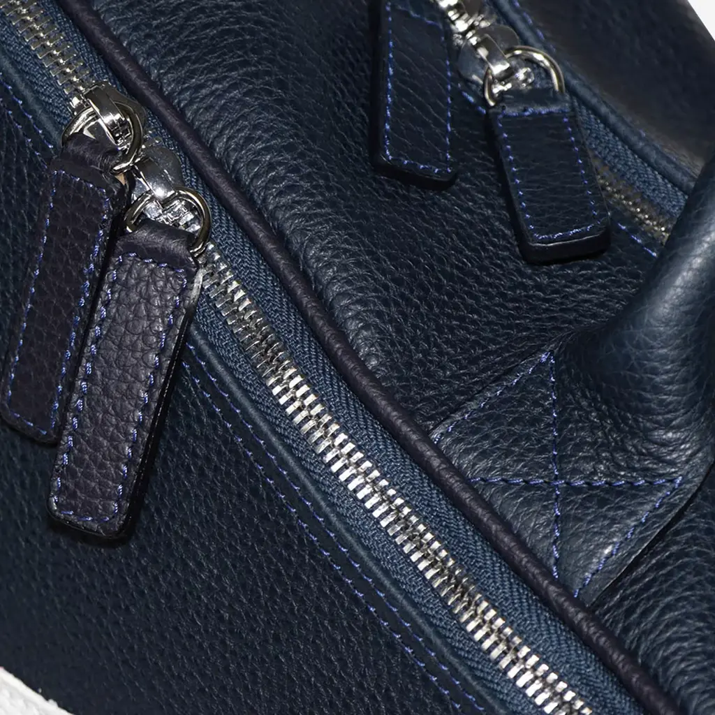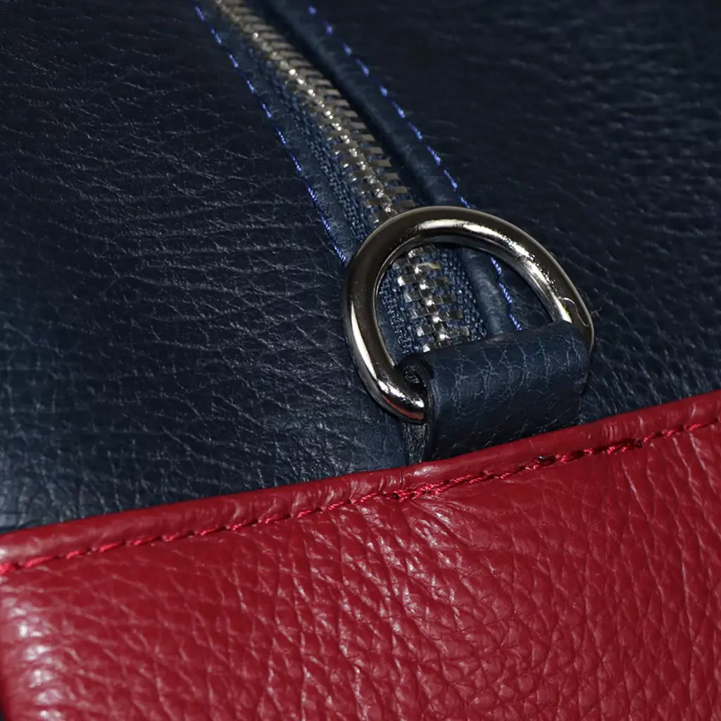 Entering the tennis club with timeless style is possible with this fine tennis bag. Handcrafted of fine water-resistant leather in a combination of red, blue, and white, it offers ample space for different equipment thanks to compartments that add to a couple of pockets each welcoming two rackets. Completed by an outer pocket, it comes with an adjustable strap. Customizable with one's initials.