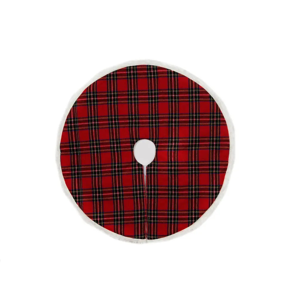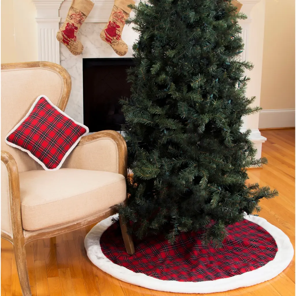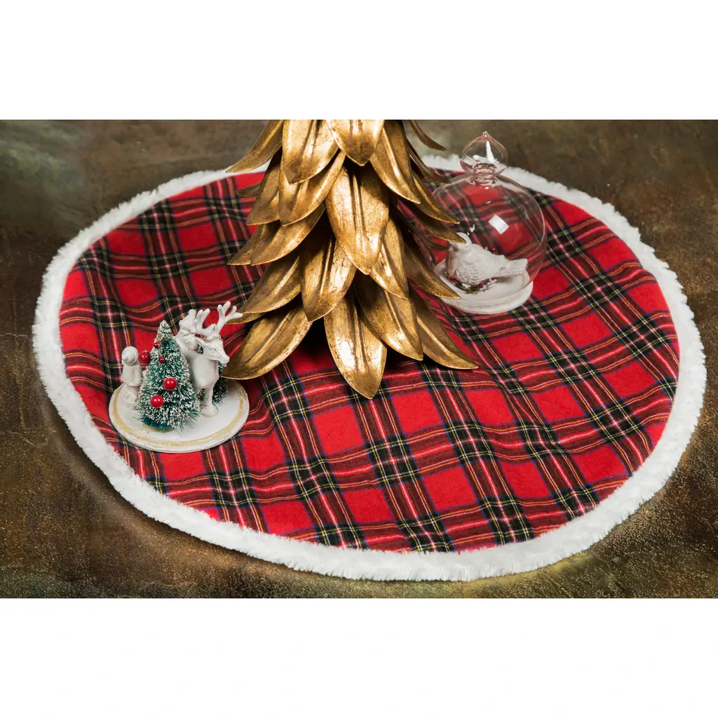 Classic Christmas Check Mini Treeskirt With Faux Fur Trim, 20-Inch - 48" Round