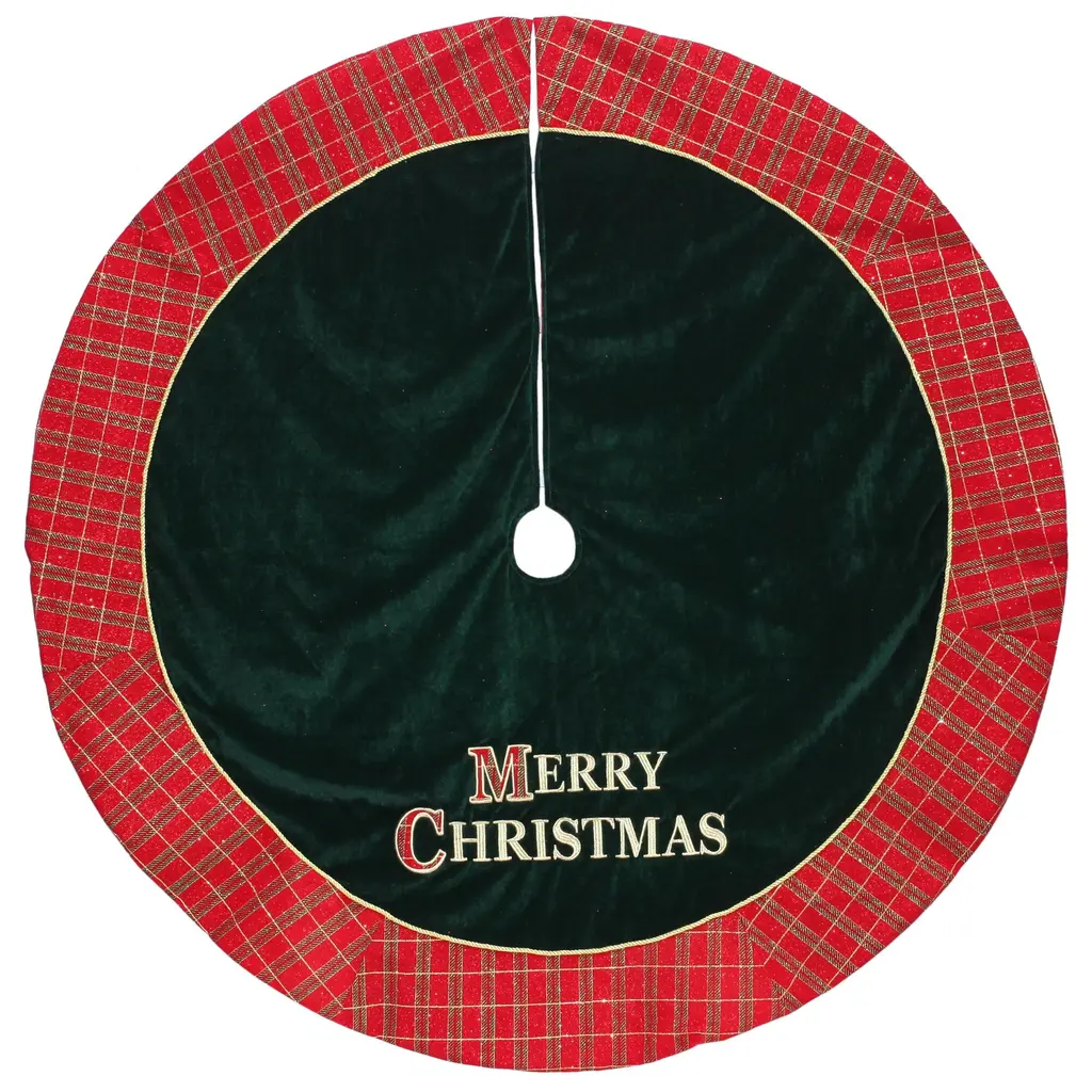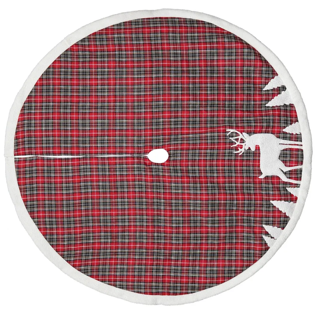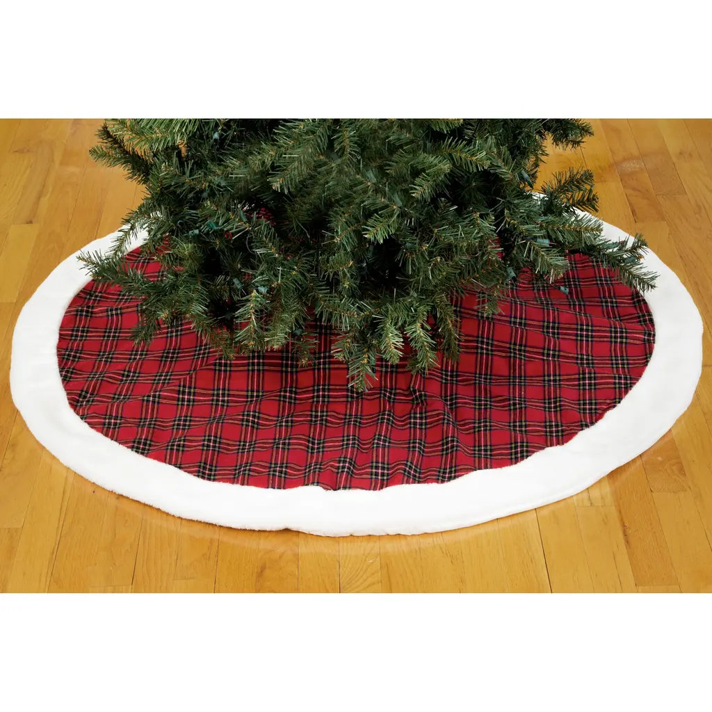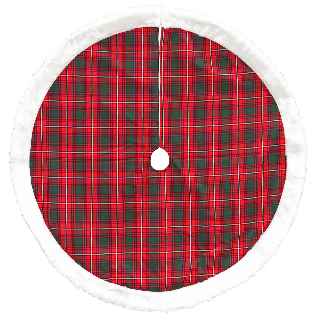 Classic Christmas Check Mini Treeskirt With Faux Fur Trim, 20-Inch - 48" Round