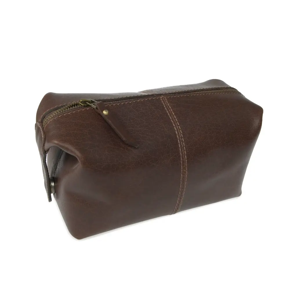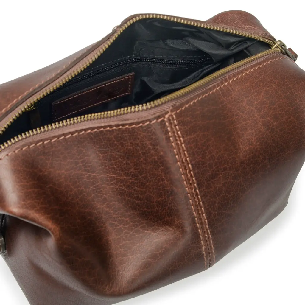 Classic Dark Brown Leather Wash Bag