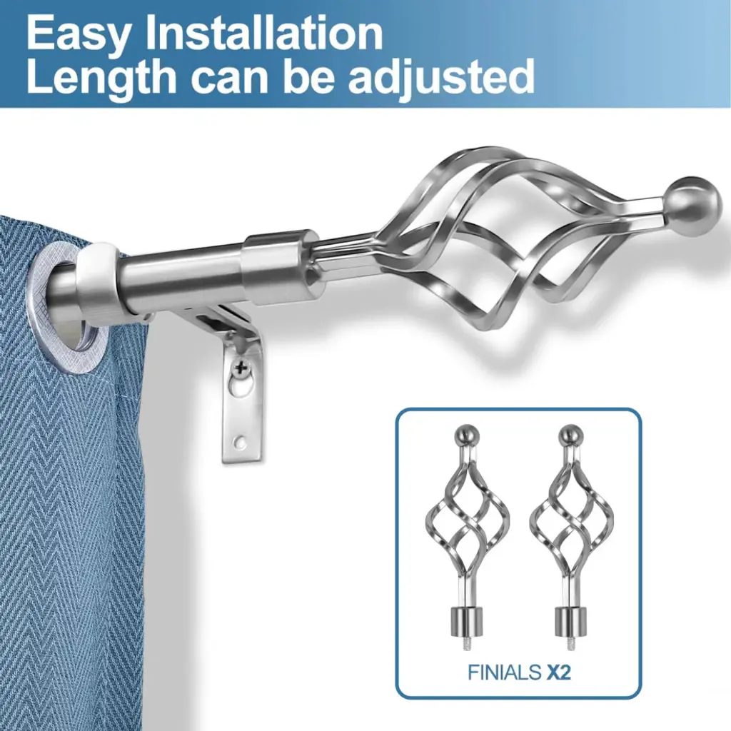 Classic Forged Iron Birdcage Curtain 3/4" Rod, Brushed Steel, 84"-120"