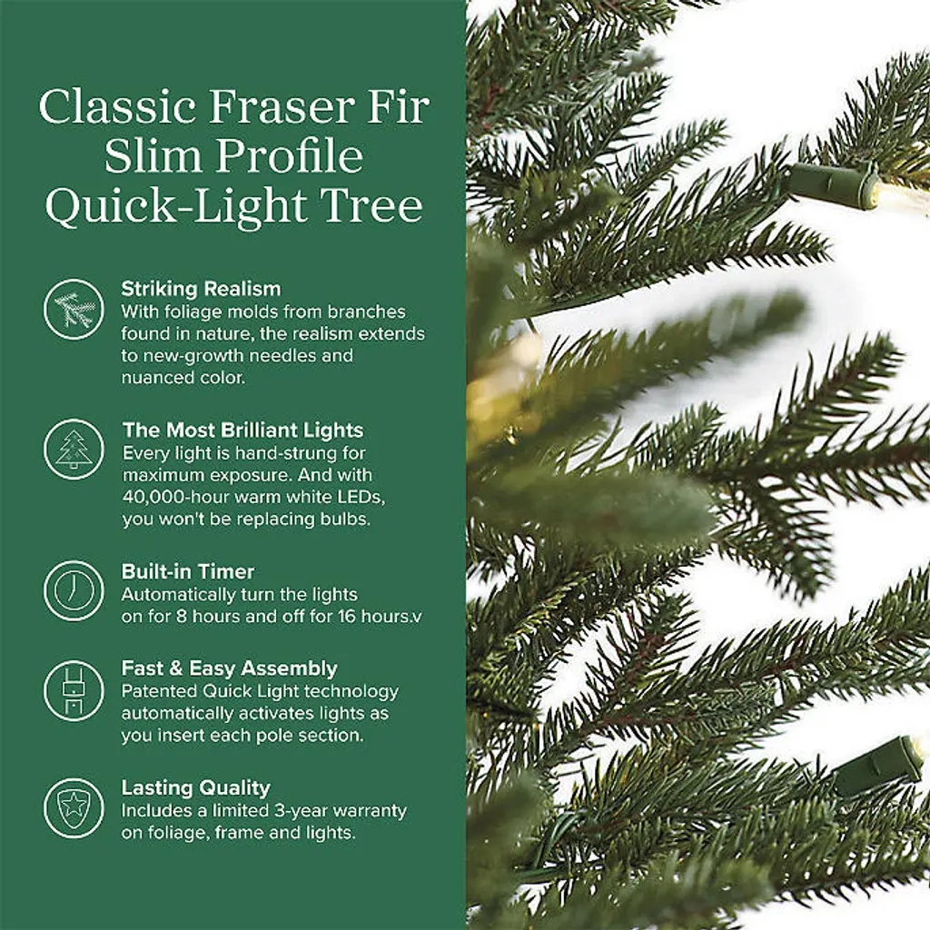 Classic Fraser Fir Slim Profile Quick-Light Tree