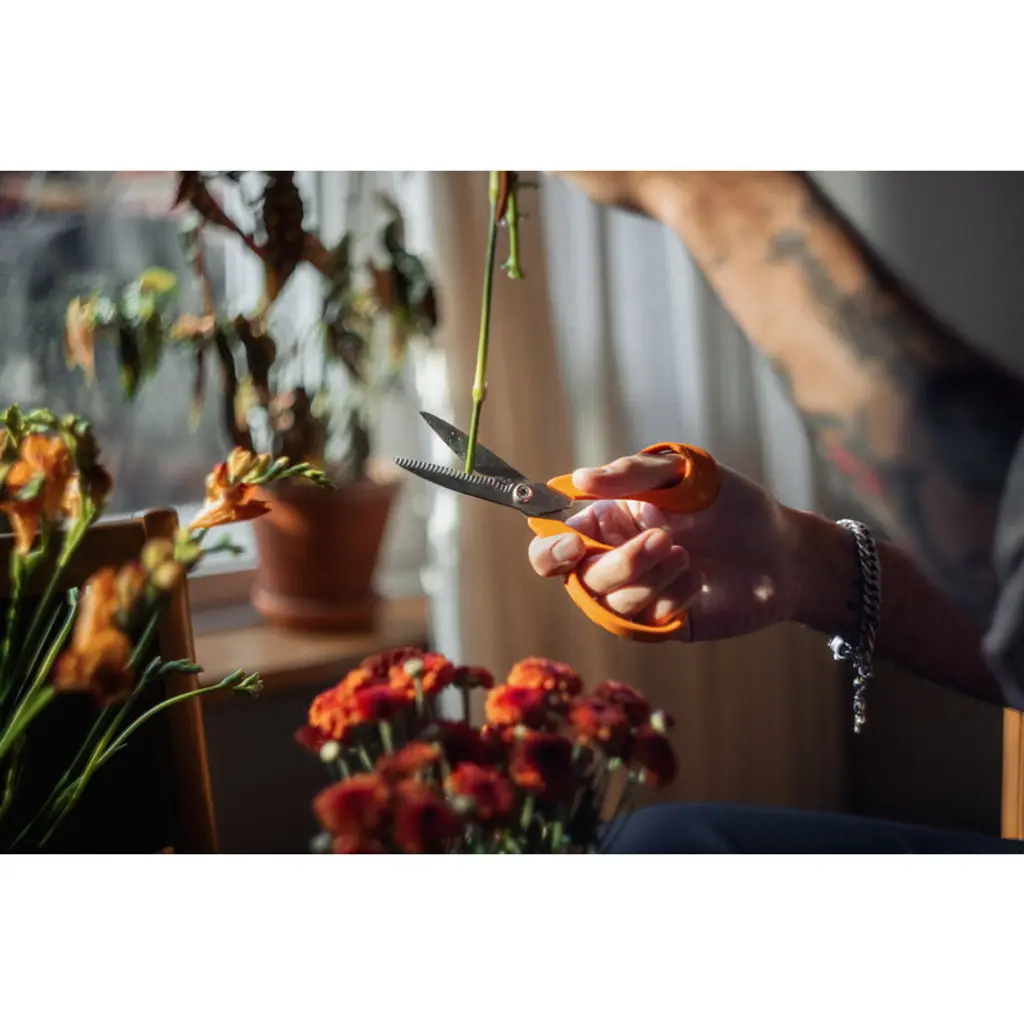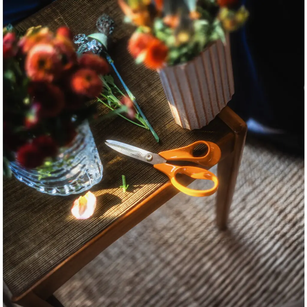 Fiskars’ Classic garden scissors are well-suited for all types of cutting, both out in the garden and inside in the kitchen. Designed for right-handed users, the serrated blades make trimming herbs and flowers easier by keeping them securely in place, ensuring a clean cut. Thanks to ergonomic handles, the scissors are also comfortable to hold. The Fiskars scissors with orange handles are a Finnish design icon, born in the village of Fiskars in 1967. The world’s first plastic-handled scissors revolutionized the concept of scissors – they were lightweight, ergonomic, easy to use, and offered exceptional performance. Over a billion pairs of Classic scissors have been sold worldwide, and they are also in the permanent collection of MoMA, the Museum of Modern Art in New York. Did you know that the quality of each pair of scissors made at Fiskars’ factory in Billnäs is still hand-tested individually?