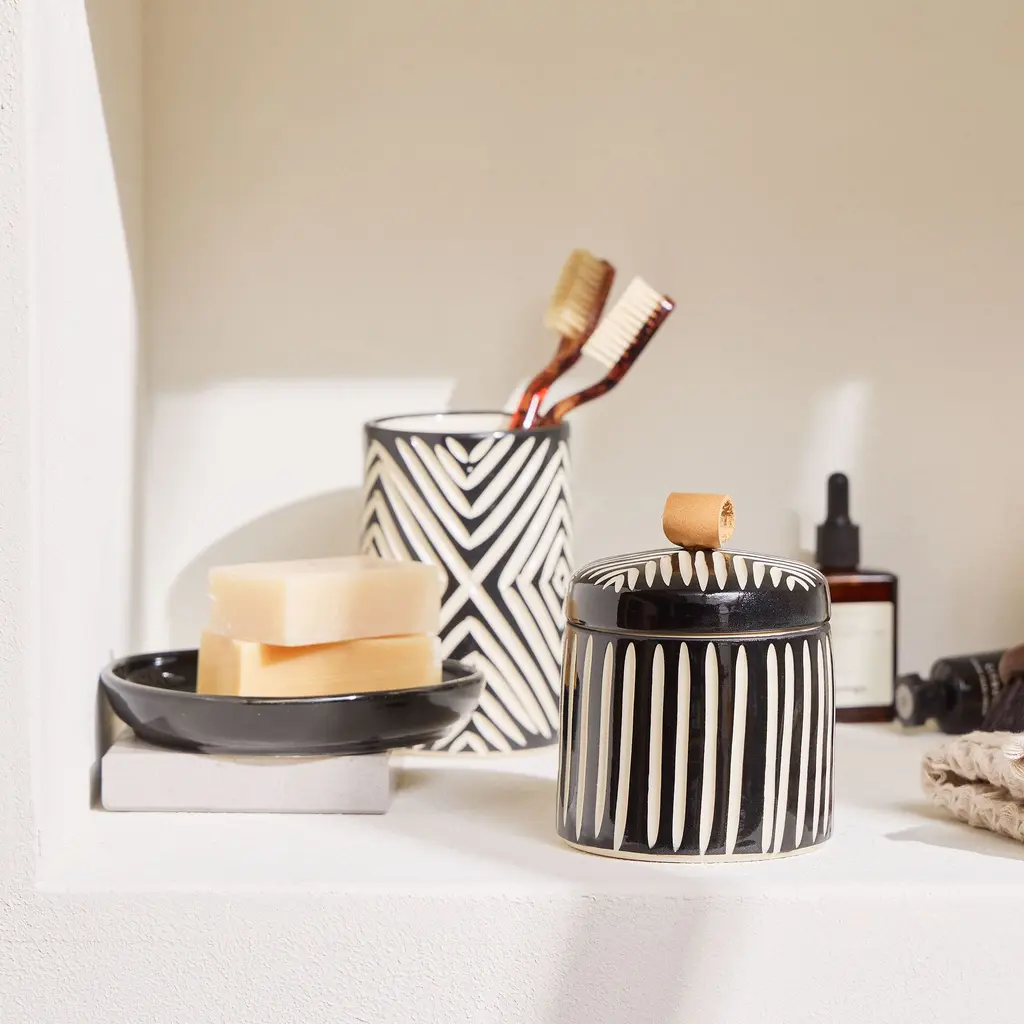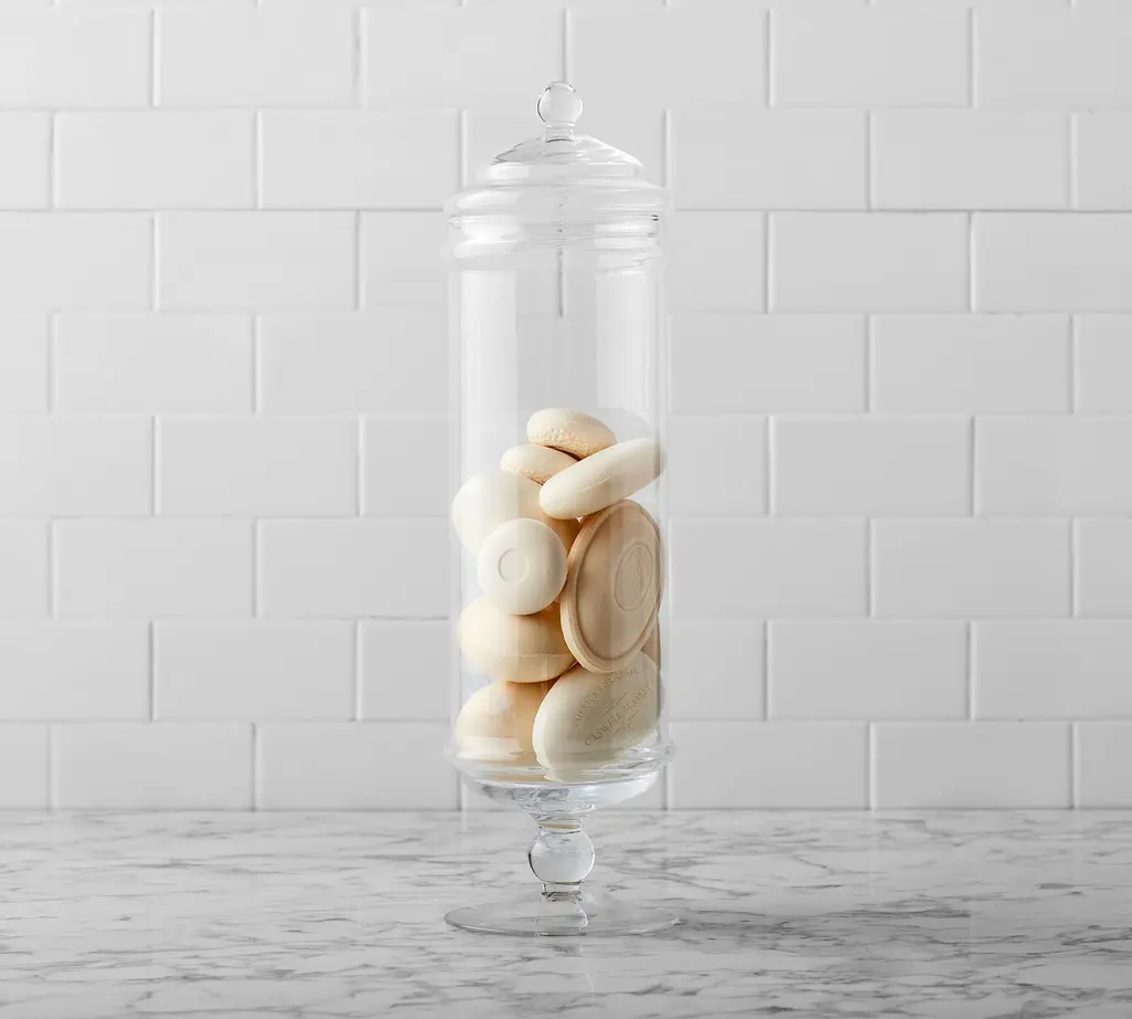 Modeled after those used for centuries to store dried herbs, our apothecary jars make any bath space feel spa-like. Crafted by hand, each has a stunning silhouette perfect for displaying bath salts, bars of soap, or potpourri.