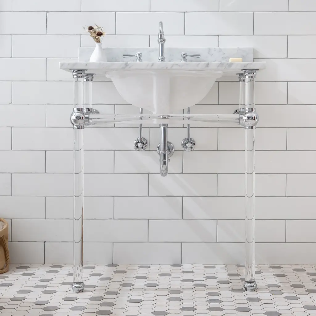 Water Creation's bathroom supply kit PS-0001 adds a lovely touch to vessel, glass, or pedestal lavatory sinks. With natural stone countertops, and elegantly bold visible plumbing, it elevates the aethestic of the bathroom. The P-Trap kit includes cross handle angle stops, wall flanges, supply tubes, and 1-1/4" diameter P-Trap. Classic bathroom supply kit PS-0001, the most stylish lavatory supply kit with decorative trap, is available in chrome, polished nickel, and Satin Gold finish.