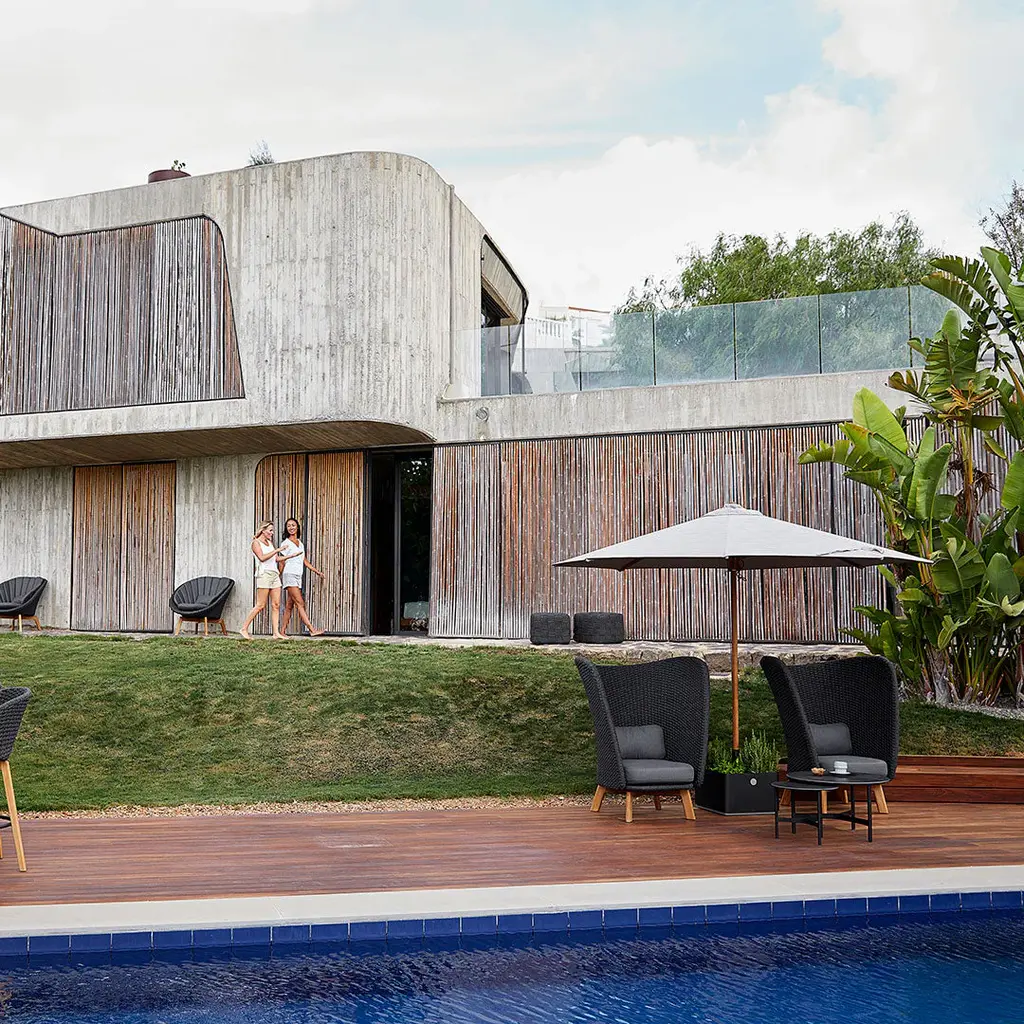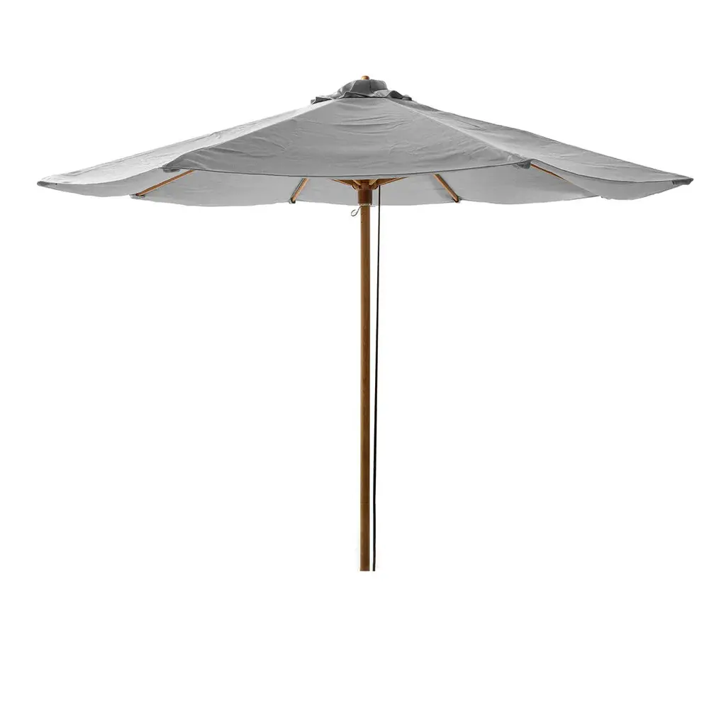 As the name of the range expresses, the parasol is created with a focus on a classic and timeless design that fits into any decor in your outdoor environment. Classic comes in different sizes, which can both be matched to the cosy outdoor lounge area with togetherness in the shade, or as a necessary addition to the outdoor dining set, so the area can be enjoyed even when the sun is at its highest. The classic parasol is made from certified teak wood, where the elegant teak slats form a beautiful web of warm wood on the inside of the parasol when it is erected. The fabric of the parasol is the durable Solution dyed 280gr/m2, which ensures a weather resistant parasol cloth, which is also resistant to UV rays. In all, a lasting and classical parasol with a long life.