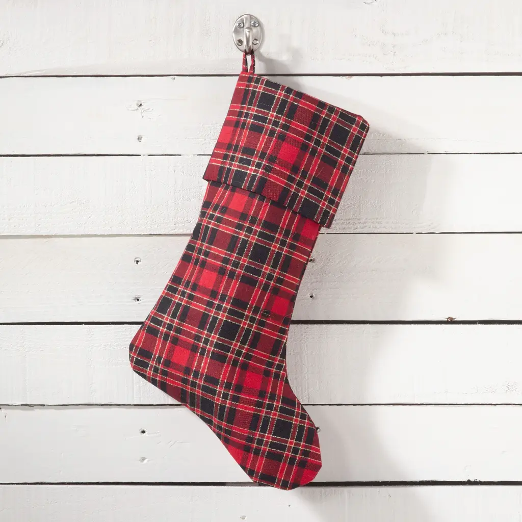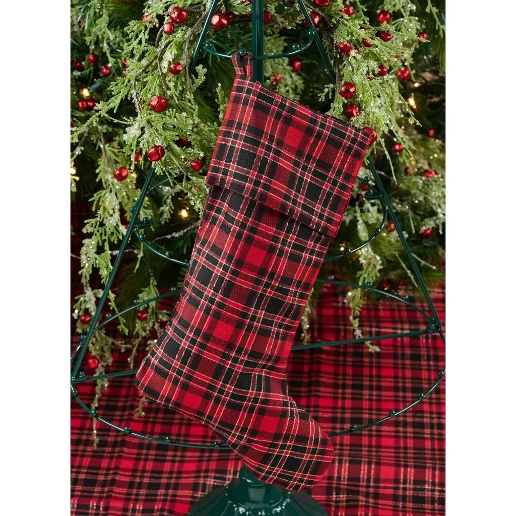With vivid colors and a classic pattern, these plaid tree skirt and stocking are a beautiful finishing touch to your holiday décor.Sizes available:Features: