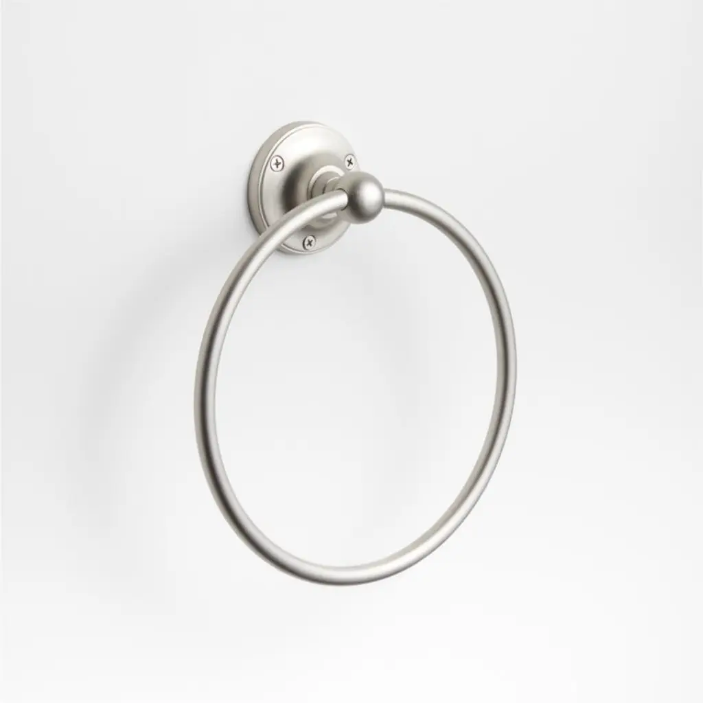 Sometimes it's the small things that pull a room together. That's why we've designed a hardware collection with modern silhouettes, clean lines and a touch of tradition to give your bathroom that perfect finishing touch. We named this hand towel ring Classic for a reasona slender rod loops through a ball finial on a round, tapered wall plate for a timeless look. Crafted of brass with a brushed nickel finish, the ring has smooth edges and a slim profile. Hardware is included to make it easy to refresh the look of your powder room or bathroom.
