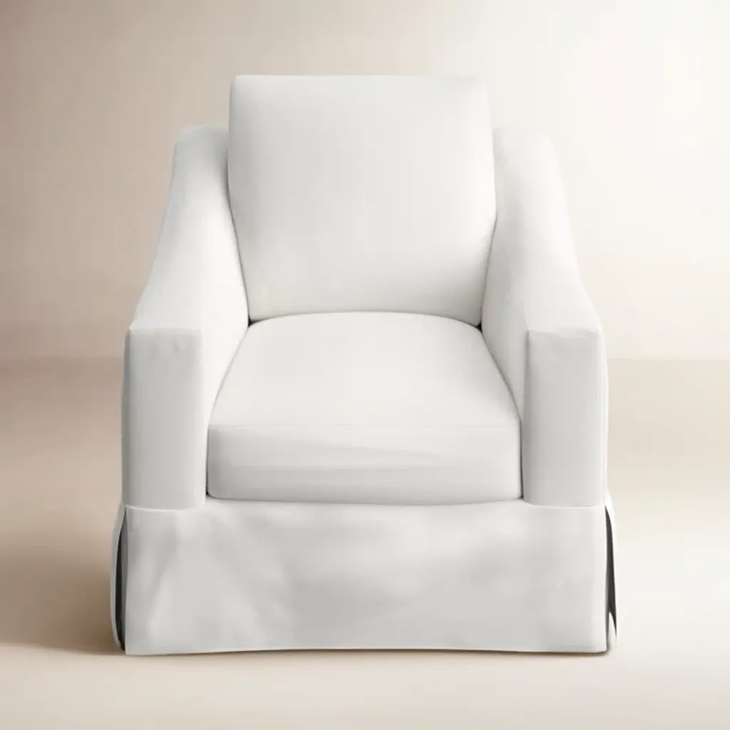 An enduring design that complements a range of interiors, our glider features gently sloped arms for support, densely padded cushions for comfort and ample space for bonding. A hardened steel mechanism ensures a full-motion swivel and glide.