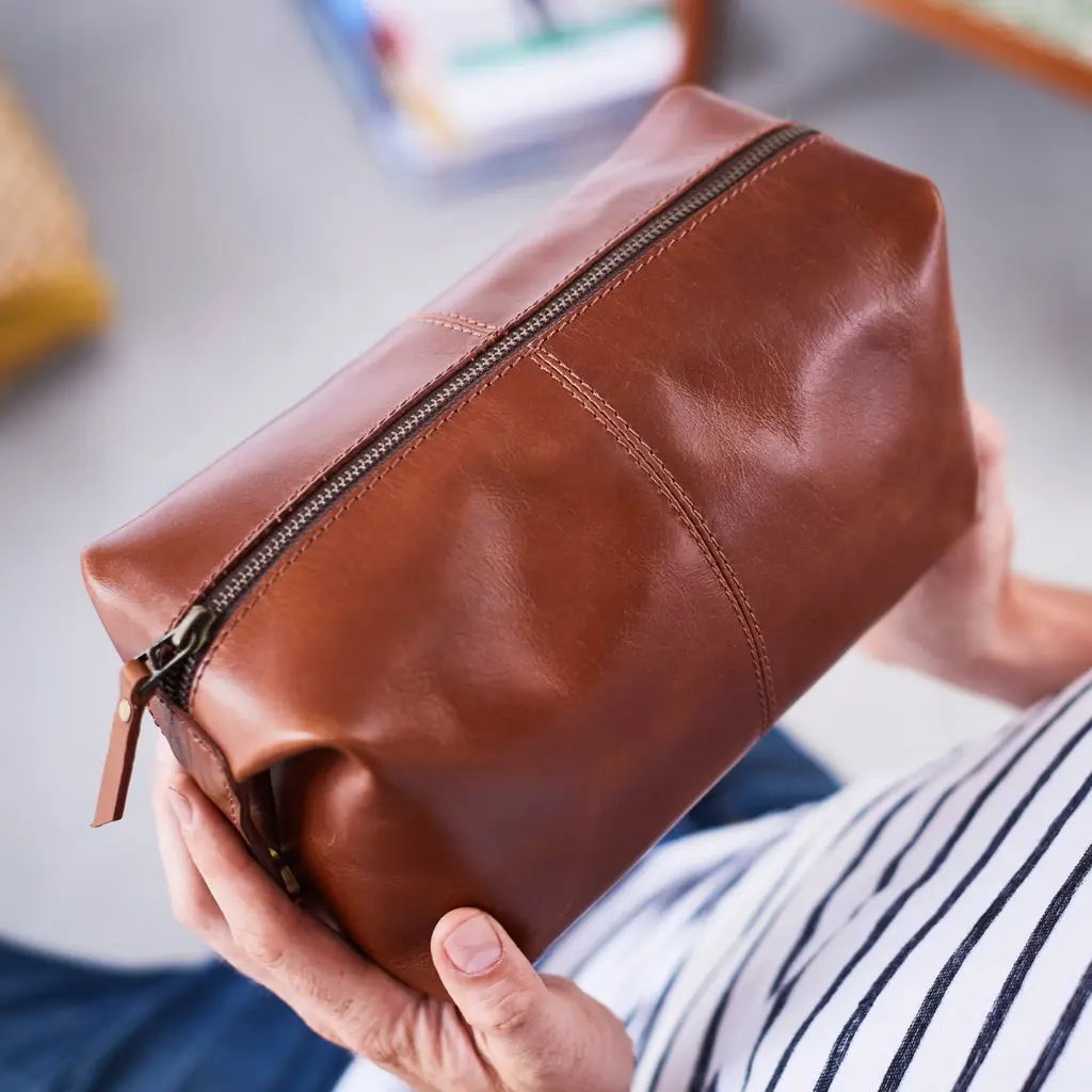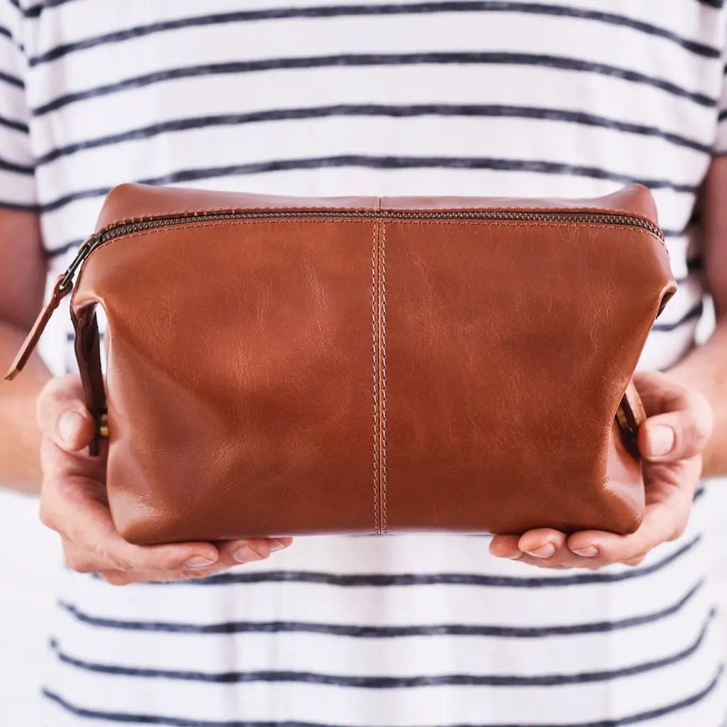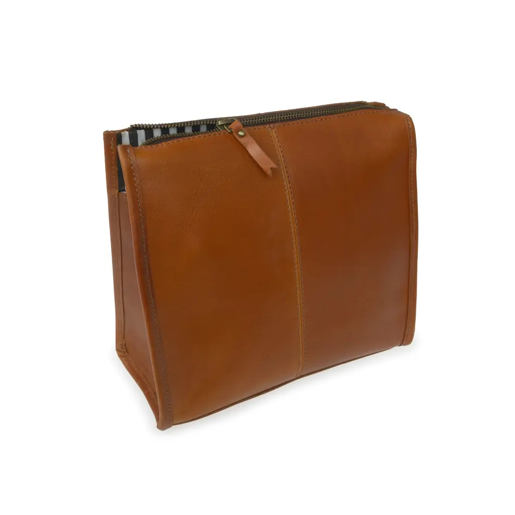 Our lovingly handmade leather wash bag combines tactile buffalo leather and a functional, vintage inspired design. Each of our leather wash bags is carefully handmade to ensure they’re of the highest quality. The beautiful buffalo leather will continue to get better with age. The ultimate place to store your toiletries, whether it’s at home or on your travels.Inside there is a black waterproof lining and a zip pocket. With every sale we guarantee the provision of a school bag to a Cambodian child in need, through the awesome charity – United World Schools. We include details of how you’ve helped – a great addition if it’s a gift.