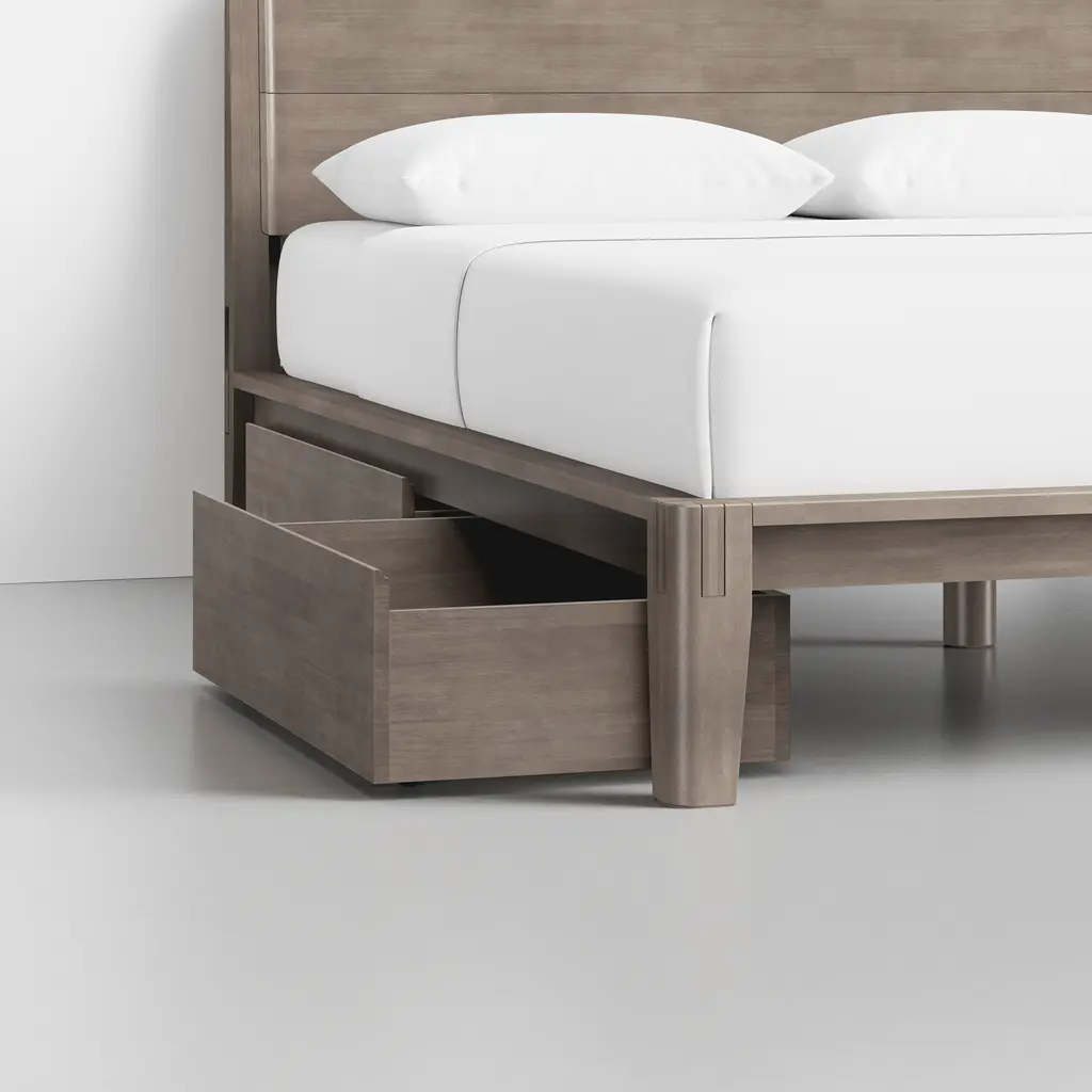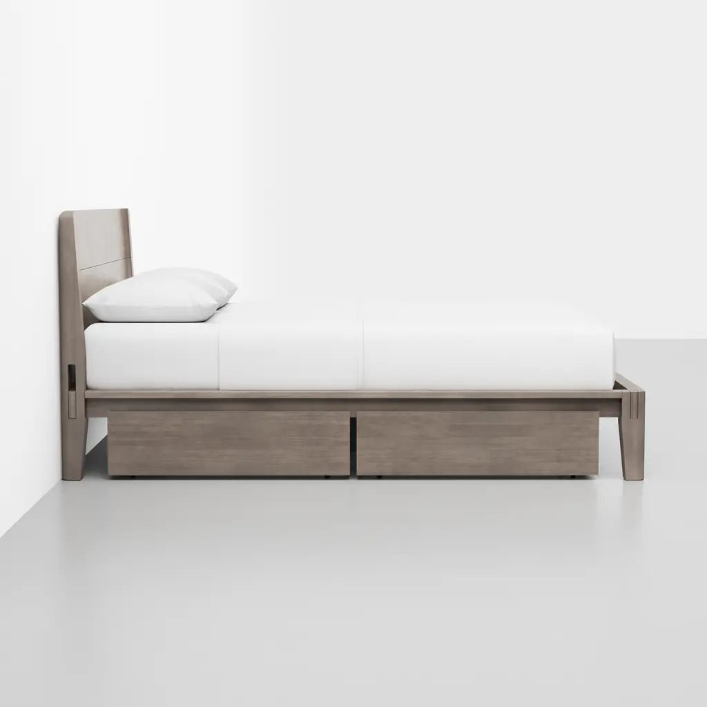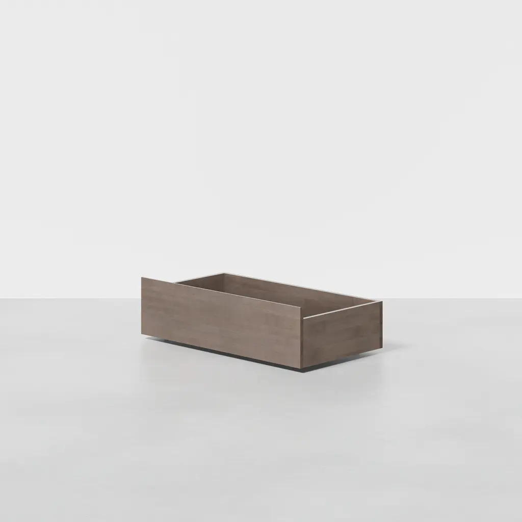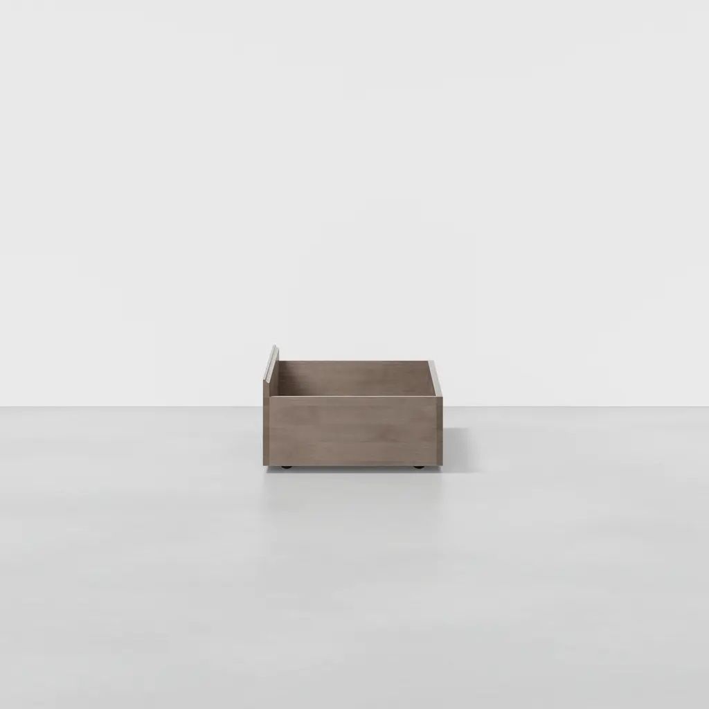 Integrated and intuitive underbed storage as a clean continuation of the Classic Bed’s minimalism. Crafted from solid wood with an overlapping drawer face. Hidden caster wheels provide a smooth experience for daily access. Available as a single unit or a pair.