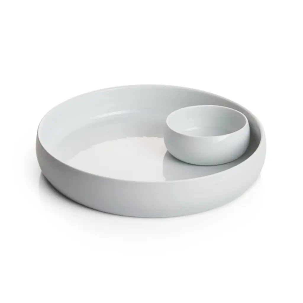 An exclusive Crate and Barrel design by ceramicist Bret Bortner, the clean curves of this truly classic white chip and dip set are the essence of simplicity for presenting dips, salsas or hummus with chips, crackers, shrimp or veggies. The double bowl design adds ultimate versatility and easy clean-up.