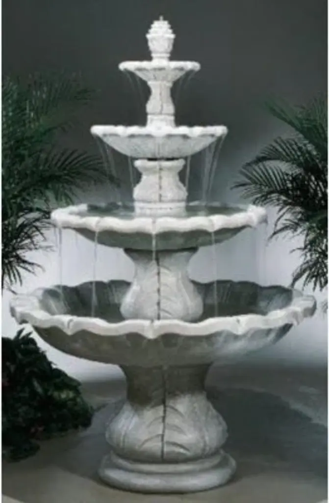 The captivating Classical Four Tier Finial Fountain is a piece of attractive work that is perfect in creating an elegant center of attraction to any outdoor space or garden. It will complement any environment and will be prized for a lifetime by friends and family.Pump and tubing are includedHeight: 86 in.Width: 52 in.Weight: 1064 lbs.Color shown on fountain: Ivory GrayMultiple colors availableMaterial: Cast Stone• The finish/stain is hand applied and can vary from what is shown on the fountain or color sample/swatch