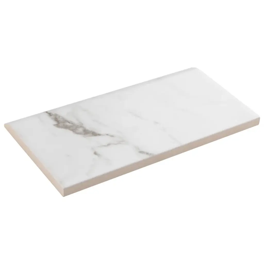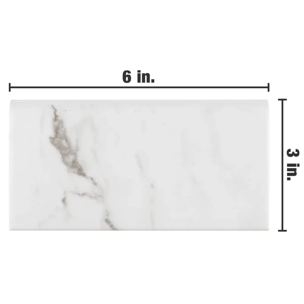 Classico Carrara 6" X 3" Matte Ceramic Bullnose Tile Trim In White/gray