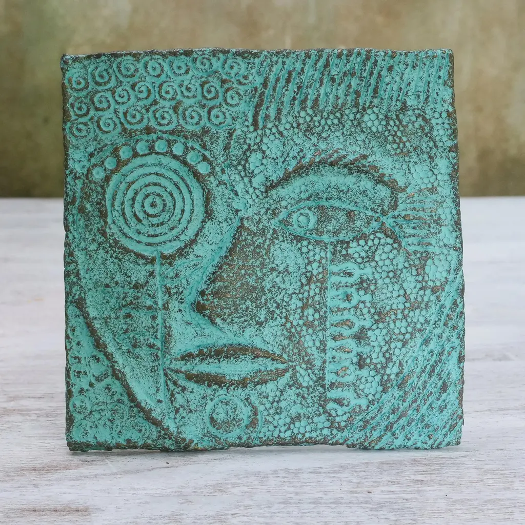 Clay Sun Handmade Hand Painted Garden, 12", Turquoise