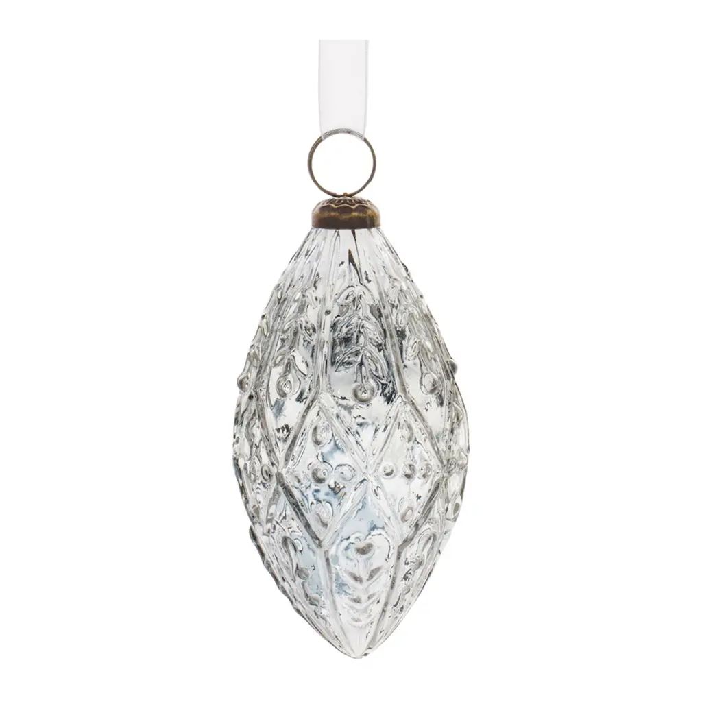 Adorn your Christmas tree with this stunning set of Glass Ornaments. Featuring four pieces, the chic clear finish paired with the raised ornamental designs are the perfect combination to create a memorable display. The quality glass composition with delicate ribbon hanger and rustic brass hook is sure to endure for seasons to come. Whether you're adding a touch of cheer to your home or gifting to a loved one, these ornaments will definitely bring holiday spirit to your home.