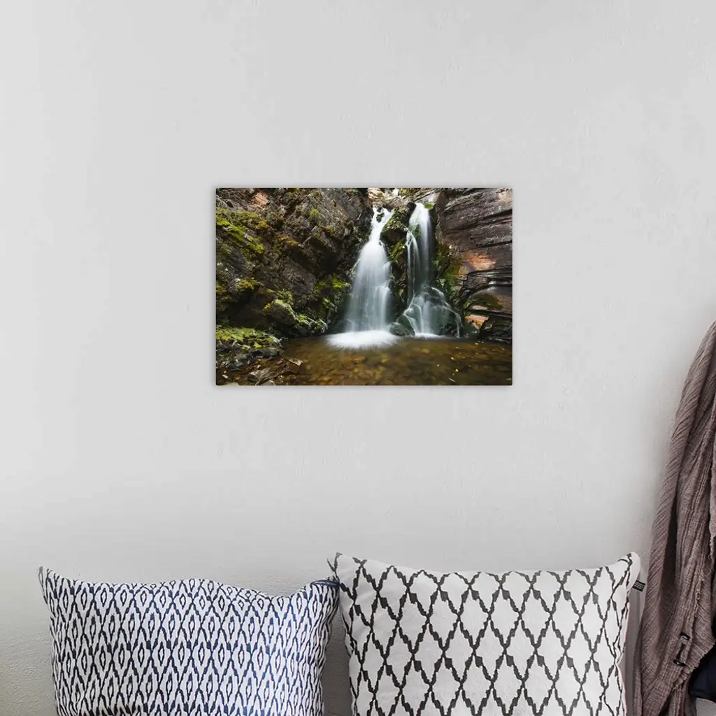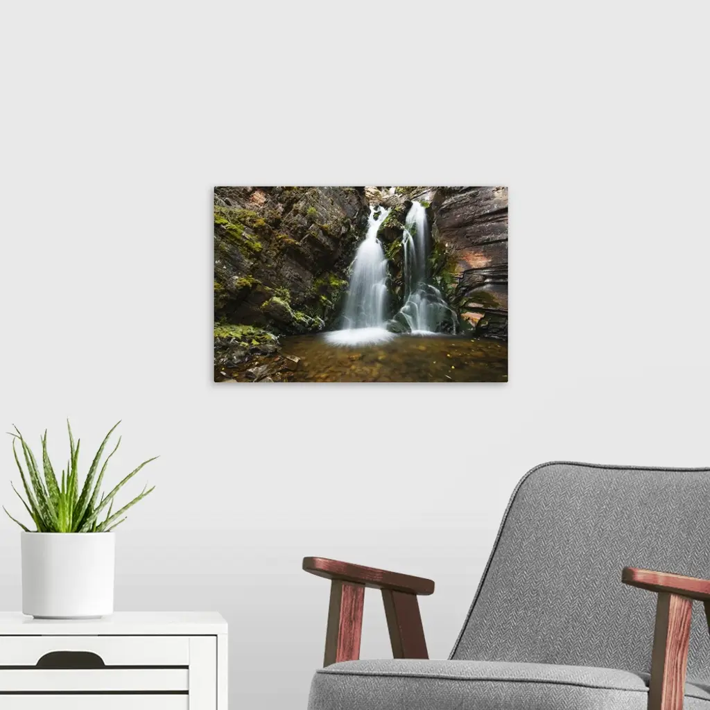 Photo on canvas of water falling from a rocky cliff into a pool of water in Montana.