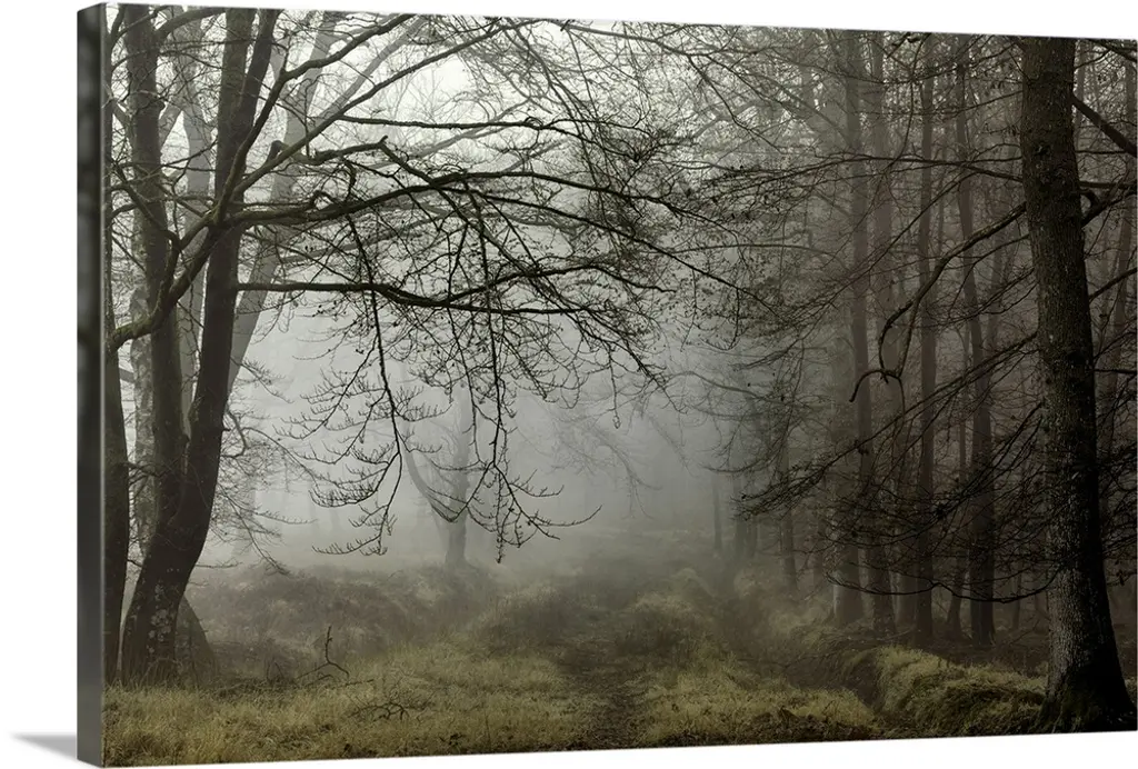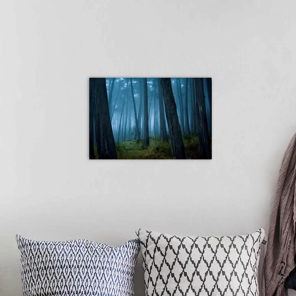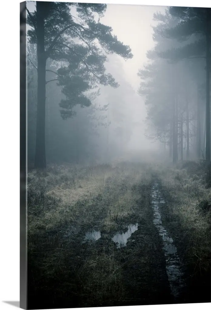 Fog surrounding Cypress trees in forest