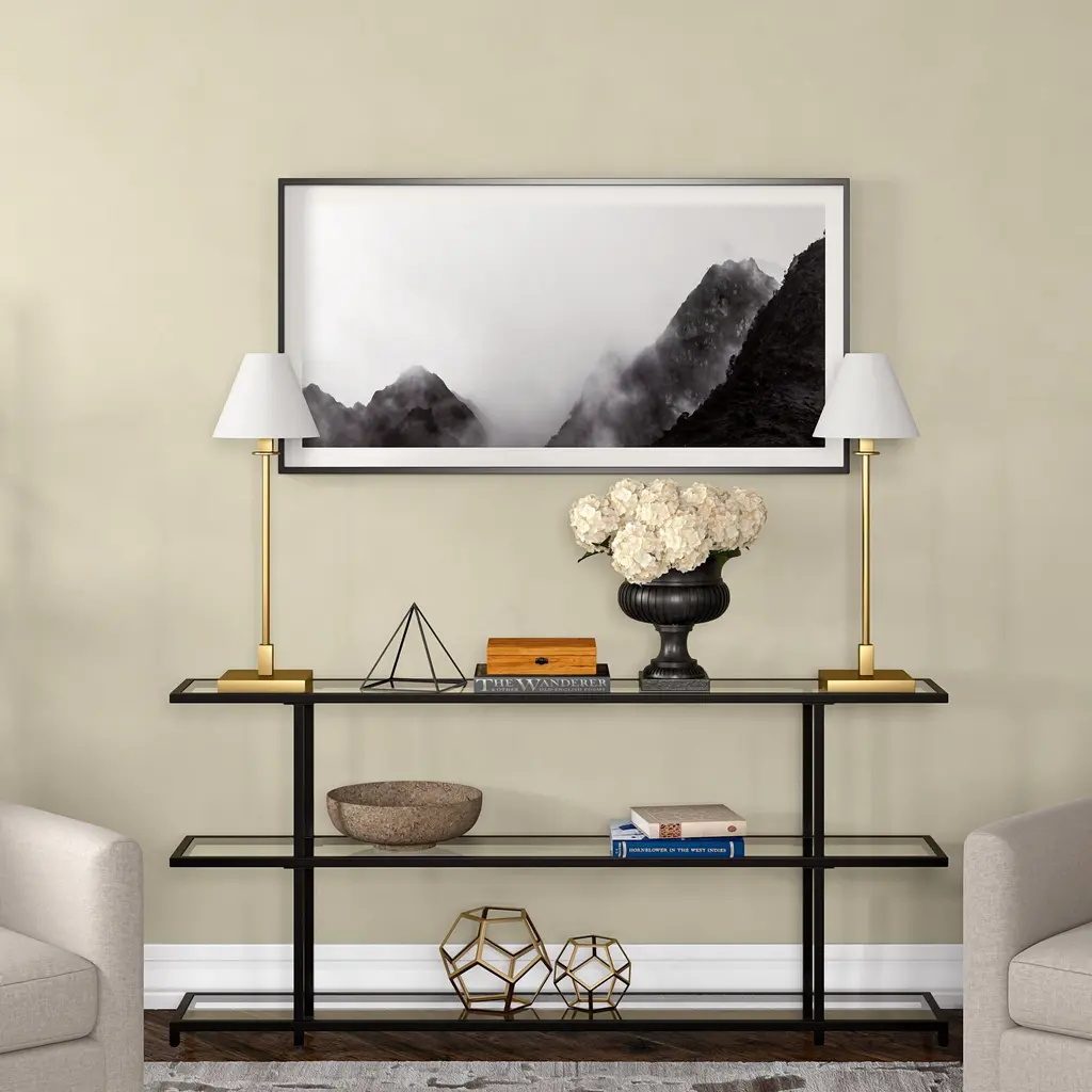 Bring a touch of modern sophistication to your dining table, mantel, or sofa table with this elegant buffet-style table lamp. The elongated candlestick base and crisp tapered fabric shade offers sleek minimalist lines, creating a streamlined yet eye-catching look. Pair them together to offset your photo collection, decorative objects, or next holiday meal.