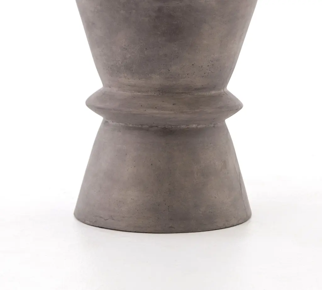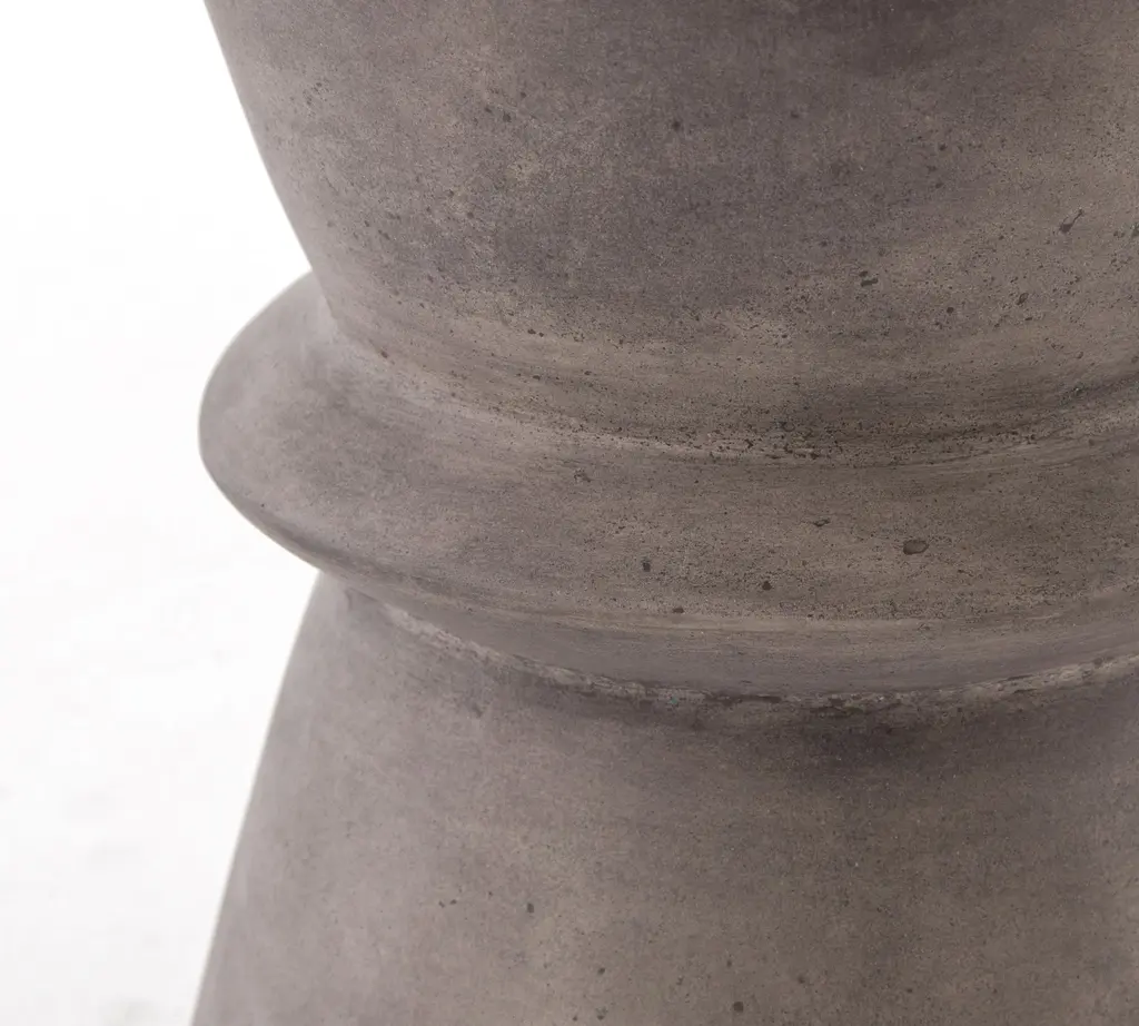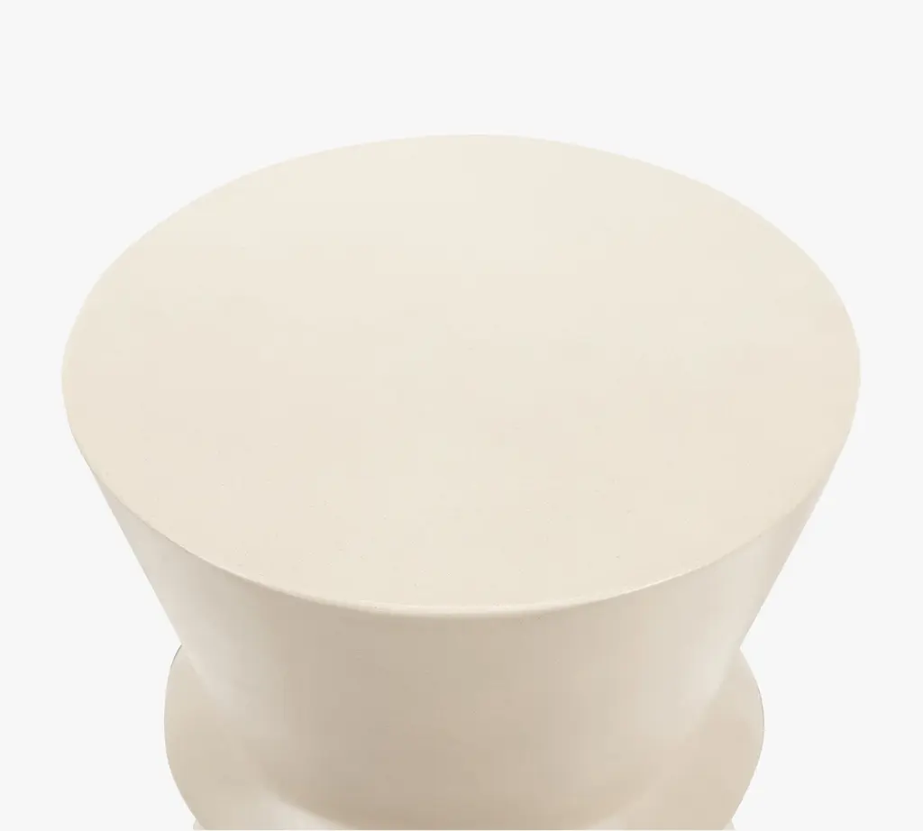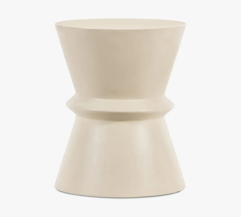 This drum-style table has a sophisticated silhouette that gets mistaken for sculpture. Sanded and finished by hand, each piece has natural variations for one-of-a-kind character.