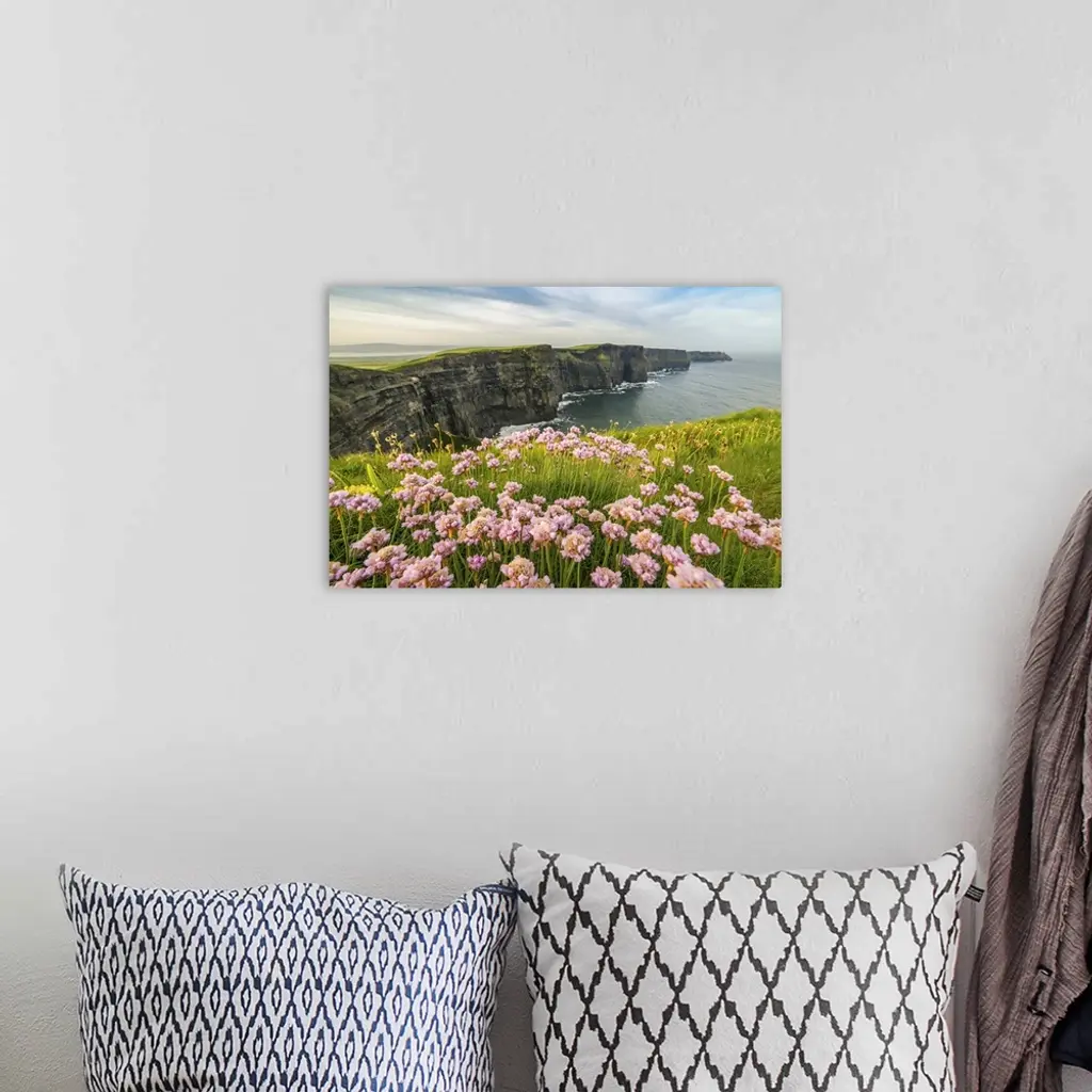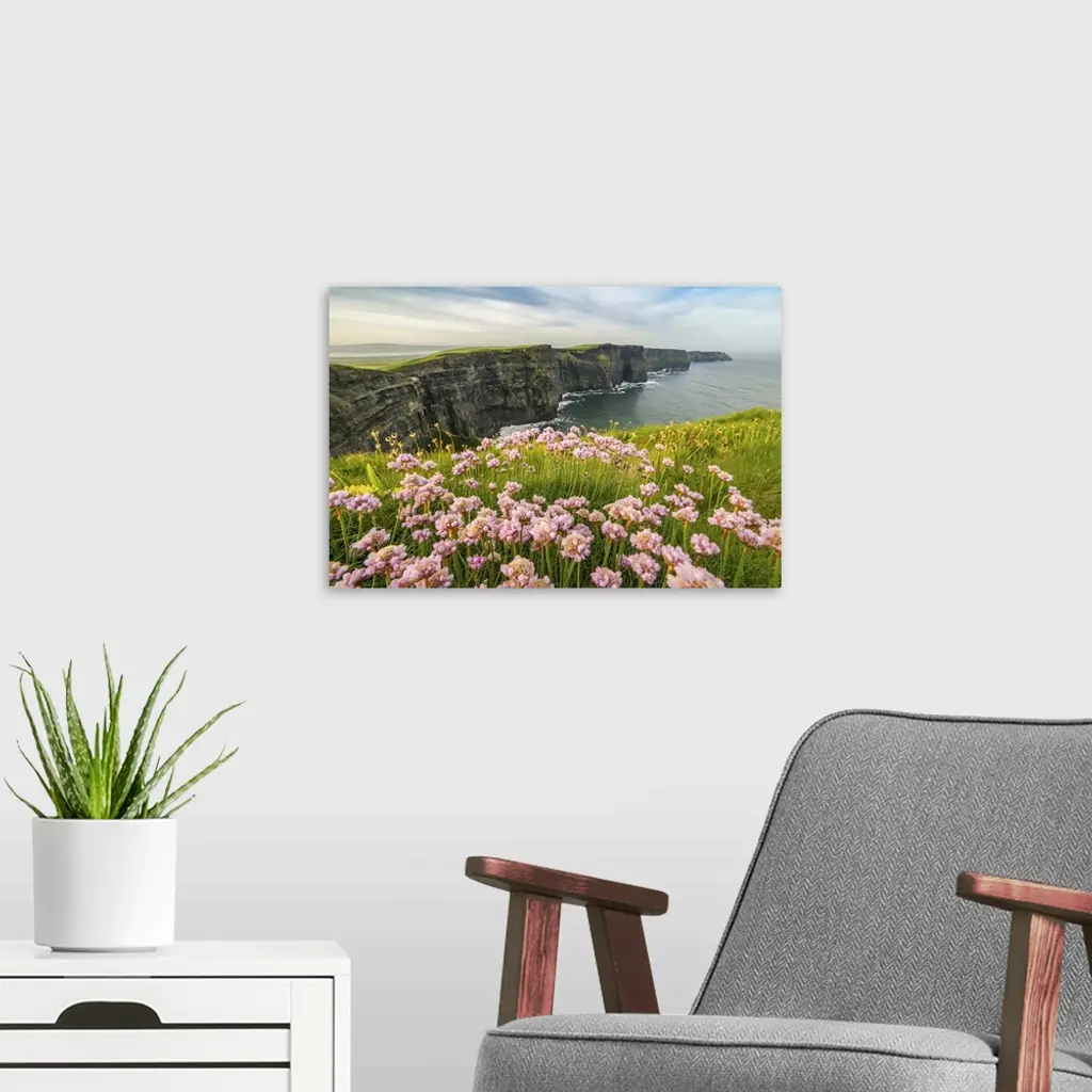 Cliffs Of Moher With Flowers On The Foreground, Munster, County Clare, Ireland