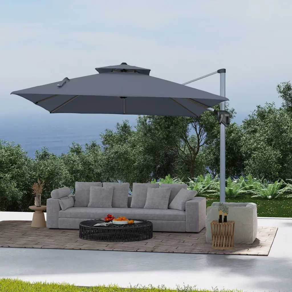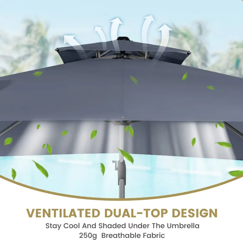 Experience ultimate comfort under our 11x11 ft double-top outdoor umbrella. Its ventilated design prevents stuffiness, while UPF50+ sun protection and waterproof fabric ensure lasting performance. With 360¡« rotation and sturdy aluminum frame, it brings style, shade, and durability to any outdoor space.