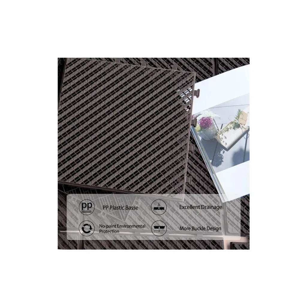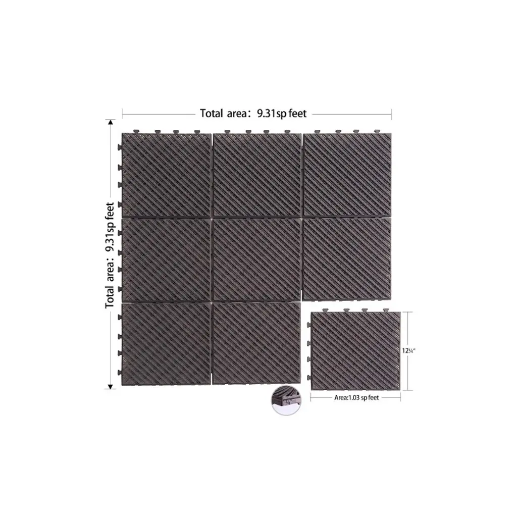 Clihome 12"x12" Square Composite Decking Tiles, Four Slat Plastic Outdoor Interlocking Deck Tiles(pack Of 36)