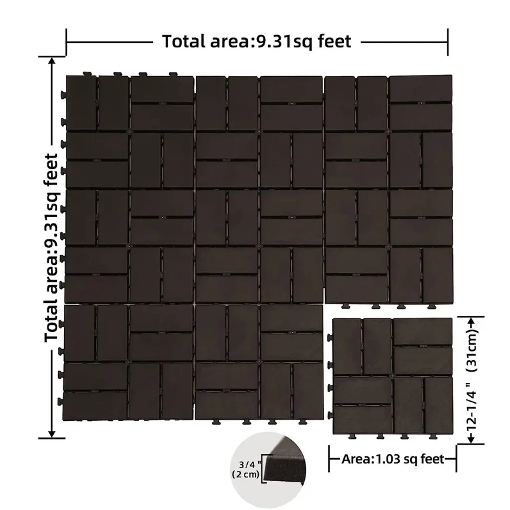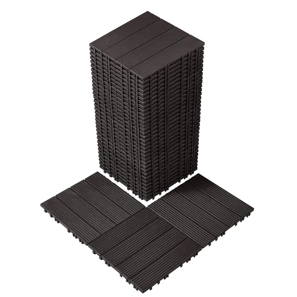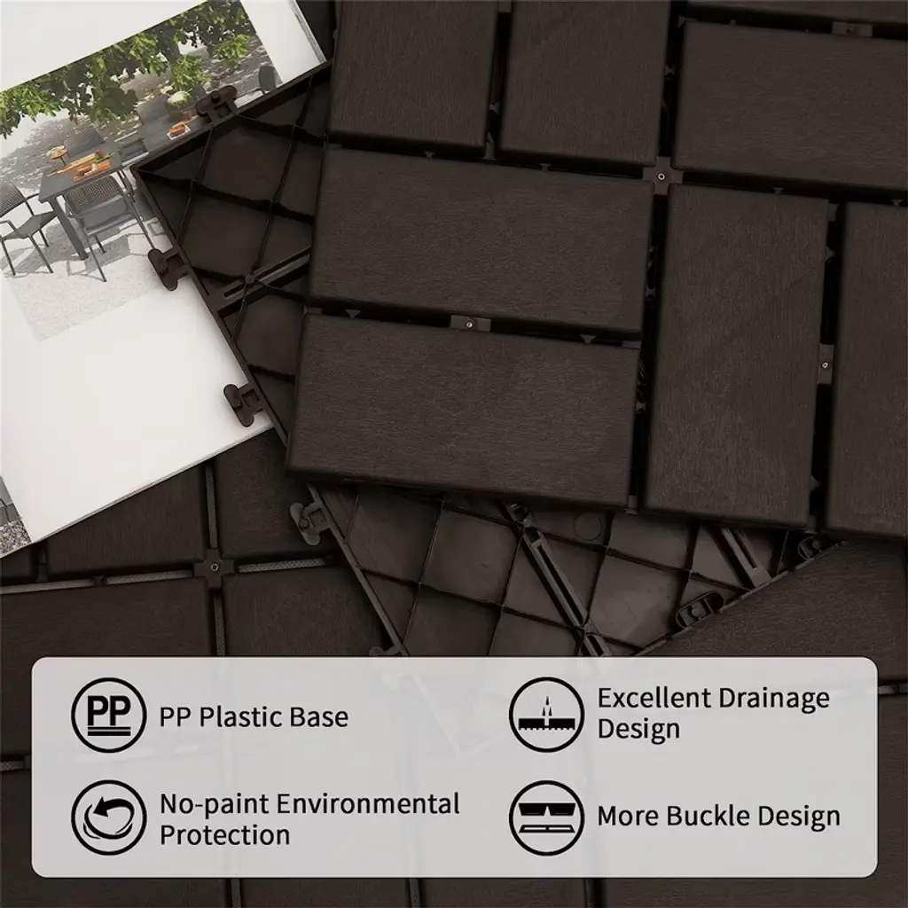Clihome 12"x12" Square Composite Decking Tiles,outdoor Patio Checked Plastic Interlocking Deck Tiles(pack Of 36)