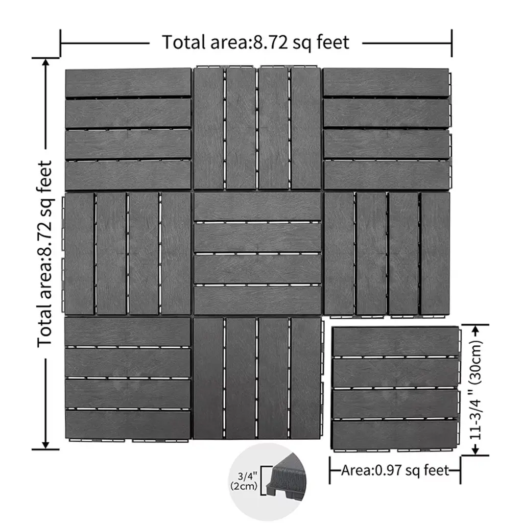 Upgrade any space instantly with our high-quality interlocking deck tiles! Made from durable plastic, they resist weather, mildew, and wear. Featuring a snap-together design, drainage system, and easy maintenance-perfect for patios, balconies, gardens, and more.