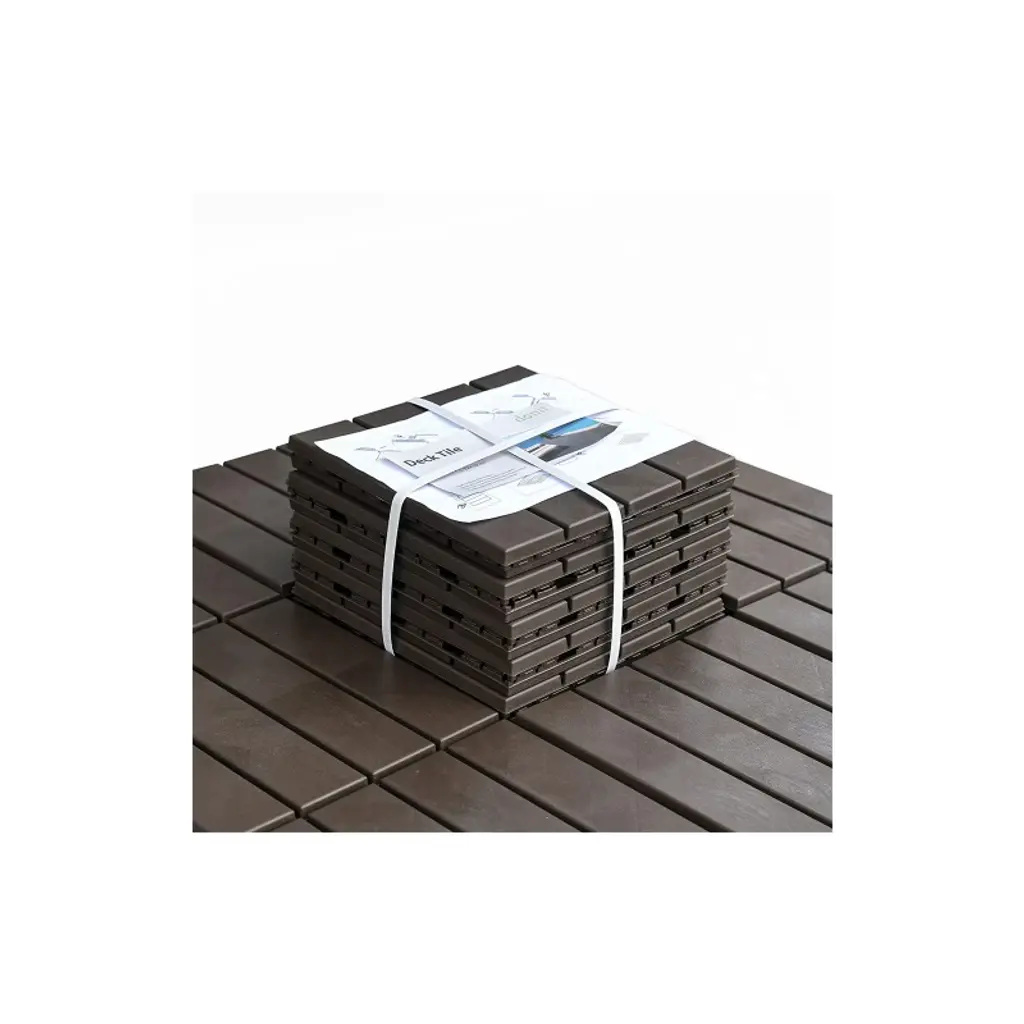Clihome 12"x12" Square Composite Decking Tiles,outdoor Patio Four Slat Plastic Interlocking Deck Tiles(pack Of 44)
