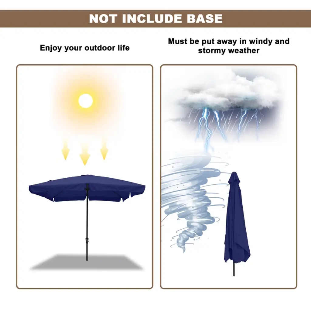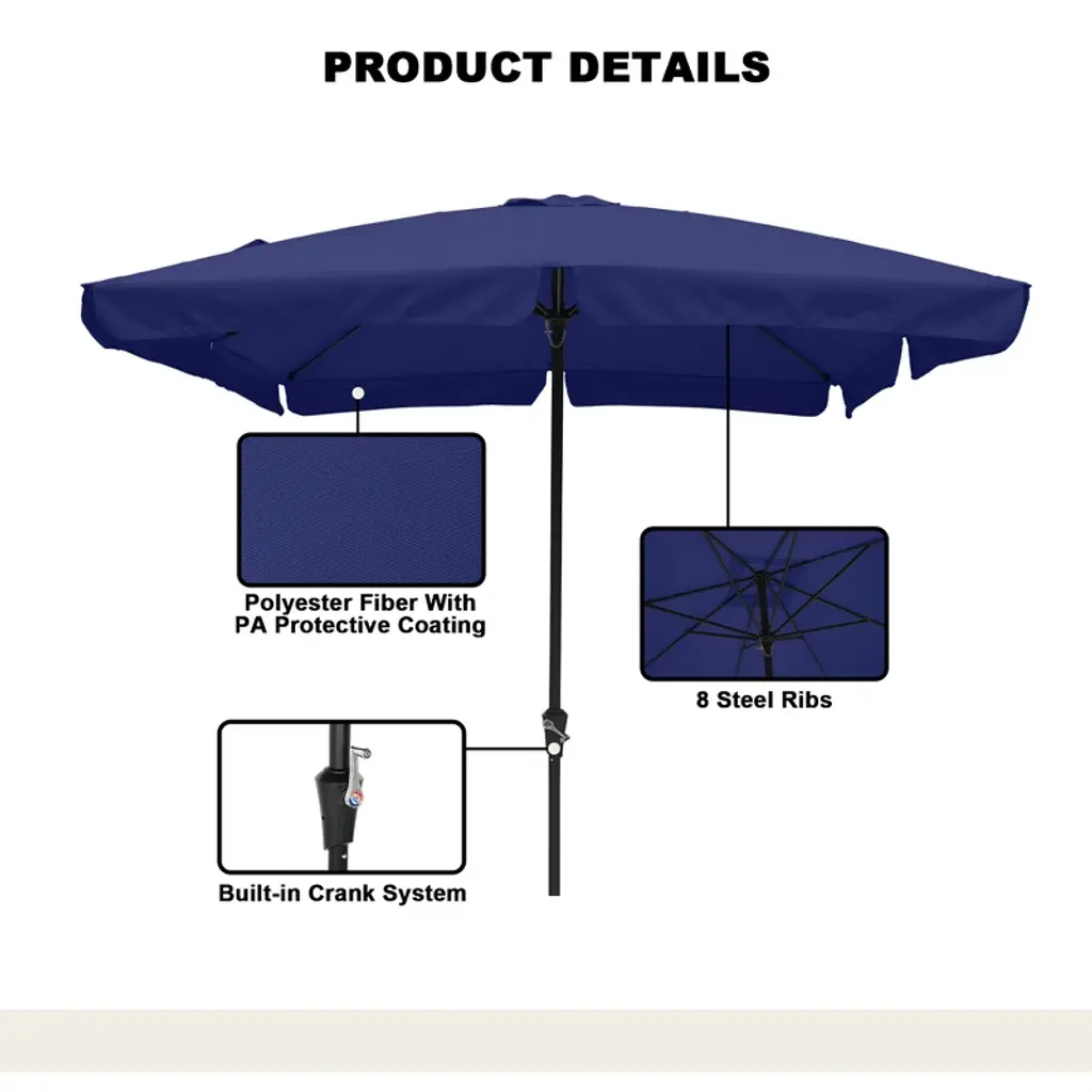 Transform your outdoor area with our stylish square market umbrella featuring a unique skirted canopy. Built with sturdy steel, easy crank handle, waterproof fade-resistant fabric, wide shade coverage, and adjustable height, it combines elegance, durability, and convenience for perfect outdoor comfort.