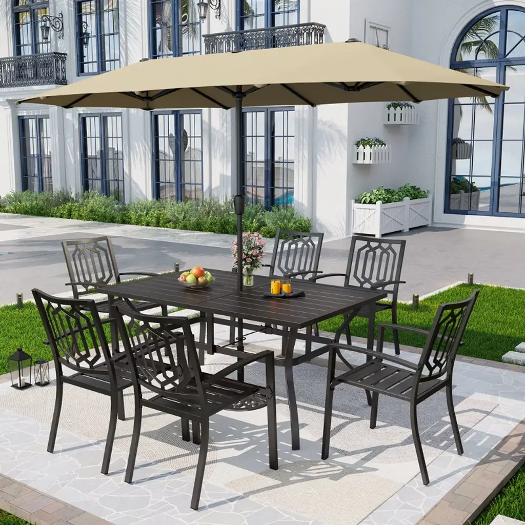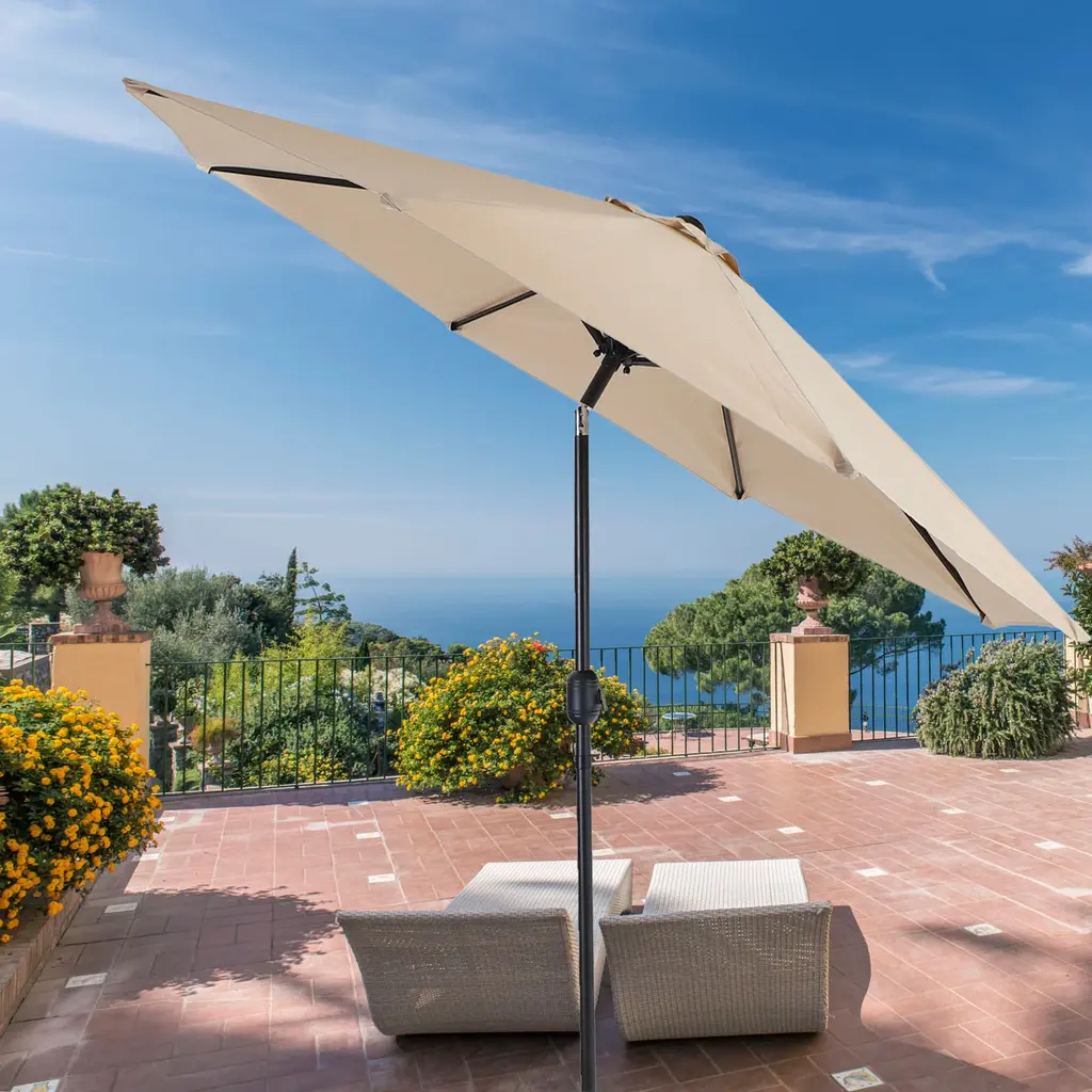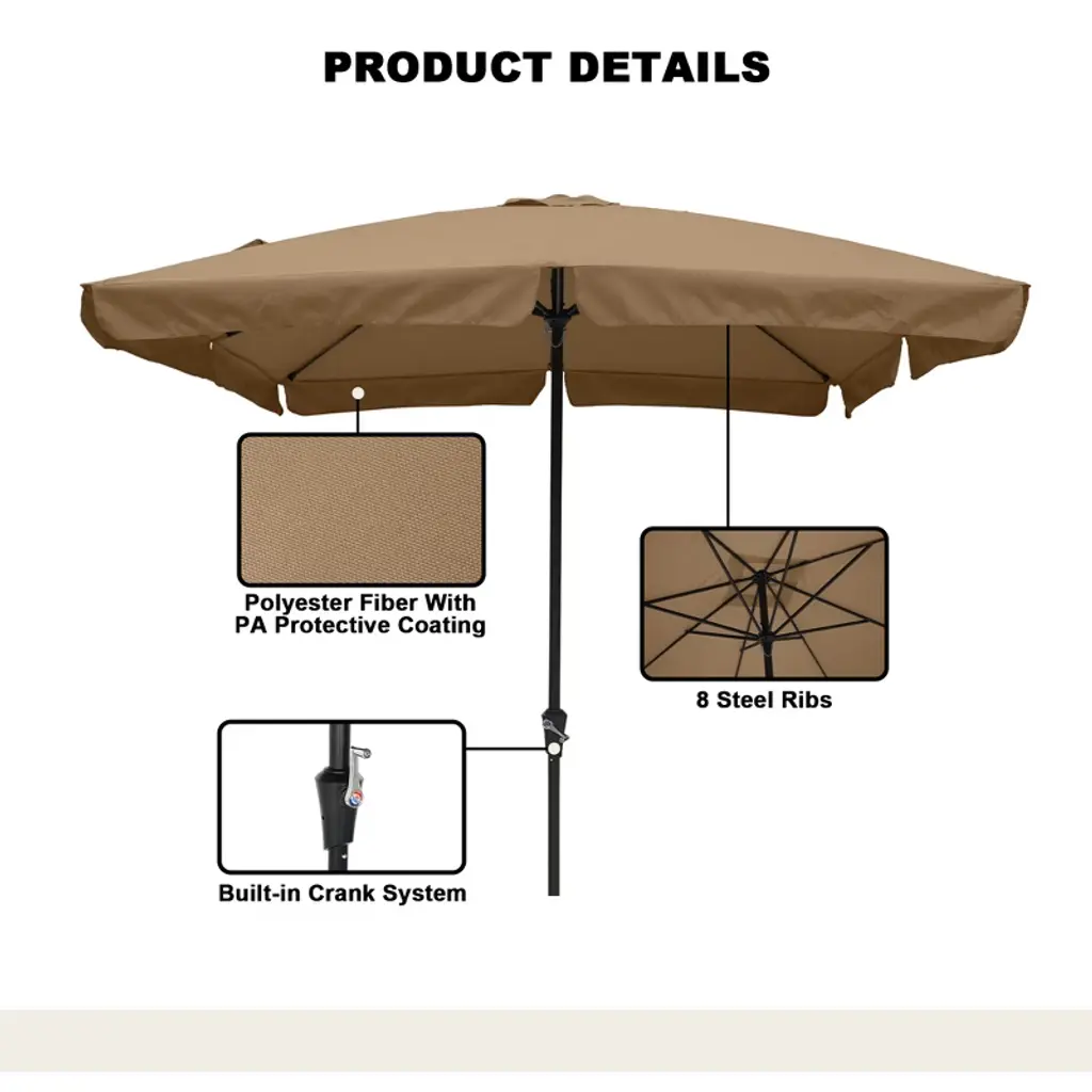 Transform your outdoor area with our stylish square market umbrella featuring a unique skirted canopy. Built with sturdy steel, easy crank handle, waterproof fade-resistant fabric, wide shade coverage, and adjustable height, it combines elegance, durability, and convenience for perfect outdoor comfort.