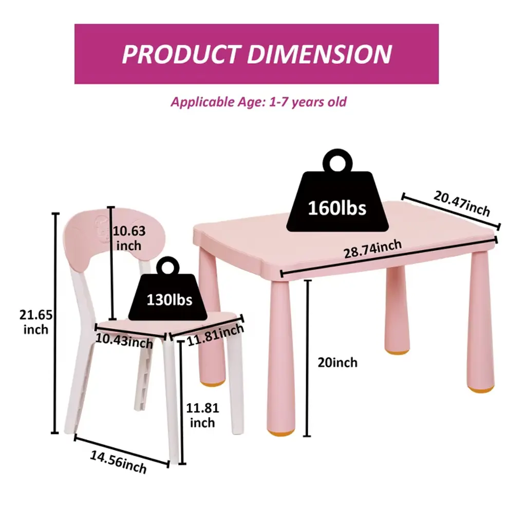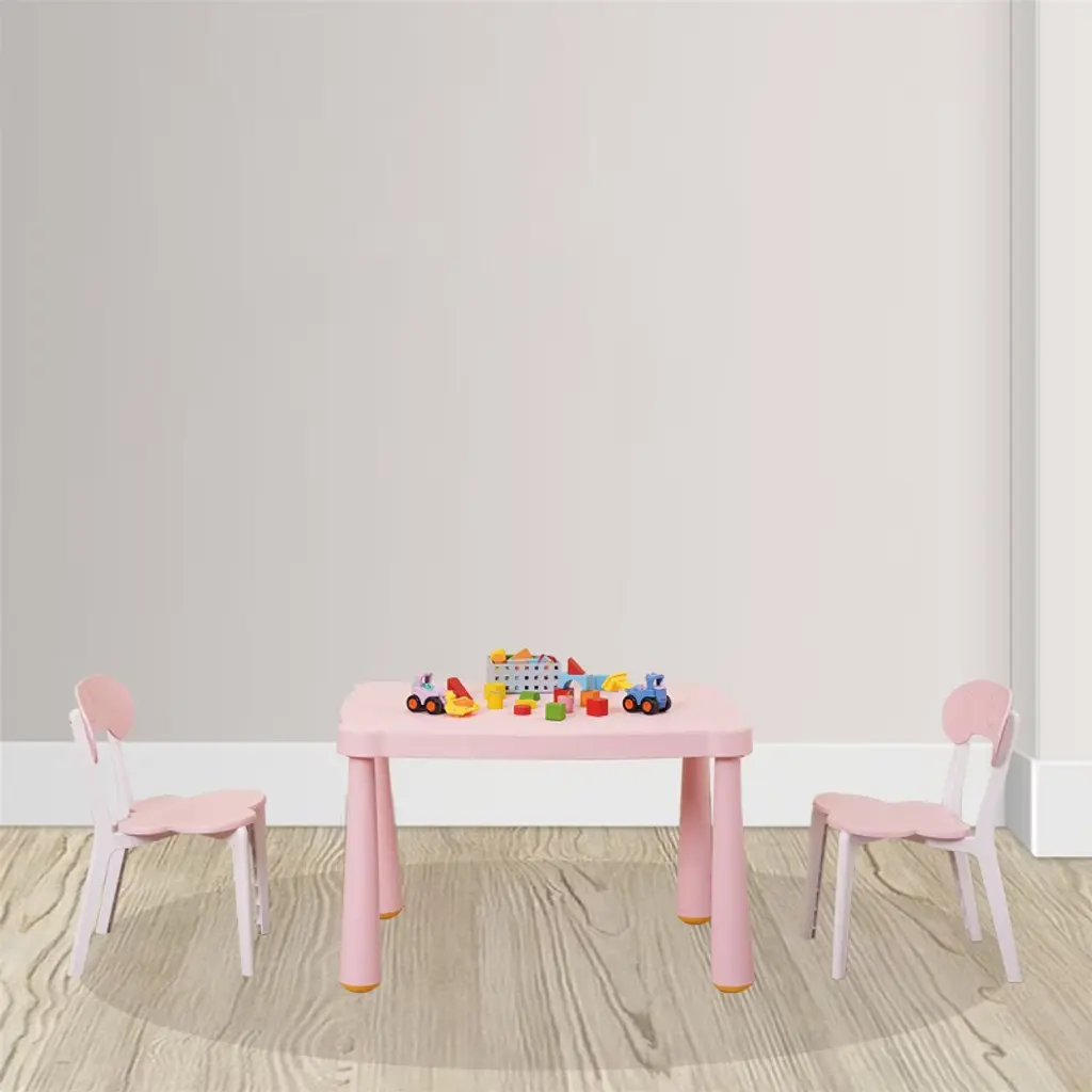 Brighten up your child’s space with this kids table and chair set made from eco-friendly PP material. Featuring flower-shaped chairs, a sturdy triangular-leg table, and safety-rounded corners, this durable and easy-to-clean set combines fun, comfort, and safety for everyday use.