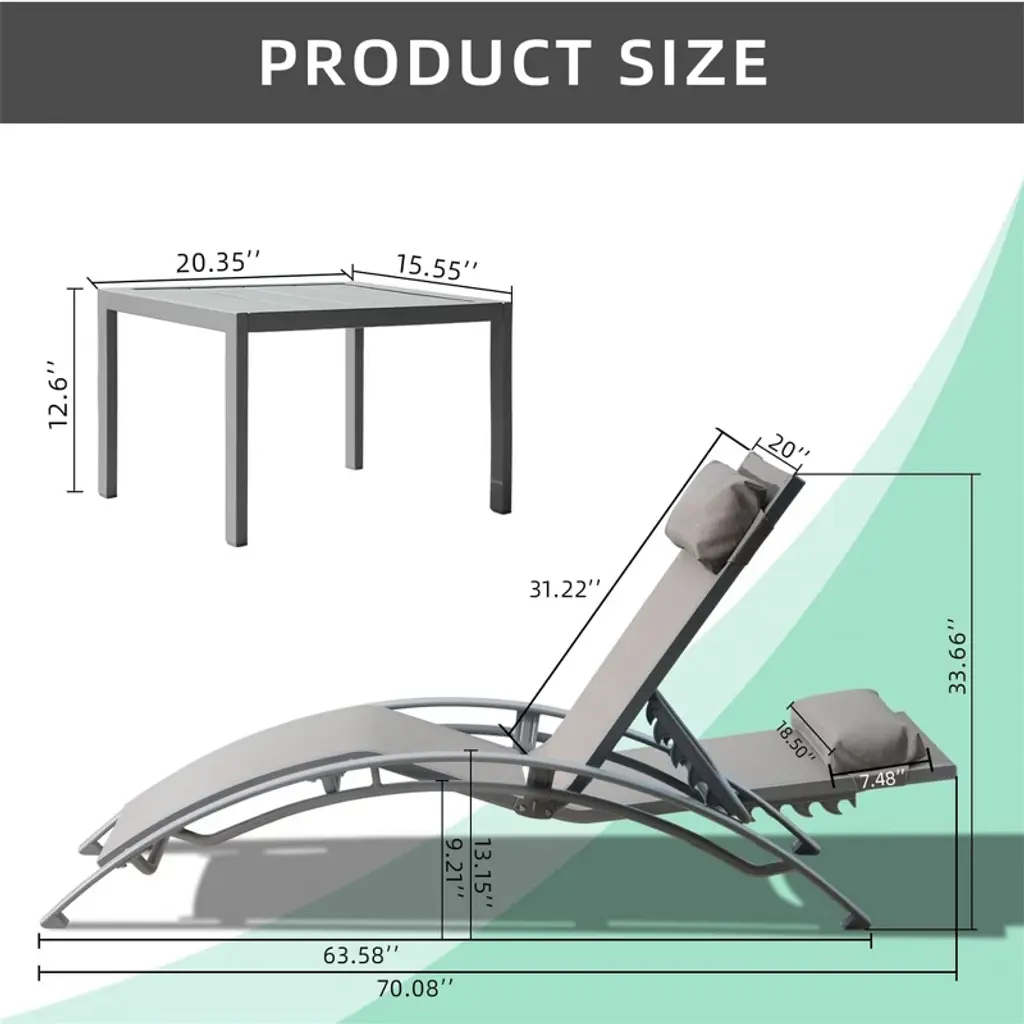 Clihome Patio Aluminum Pool Lounge Chairs Set Of 3,with 2 Outdoor Adjustable Backrest Recliner And 1 Metal Side Table
