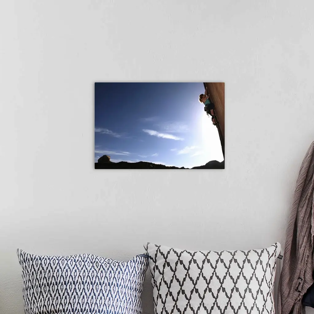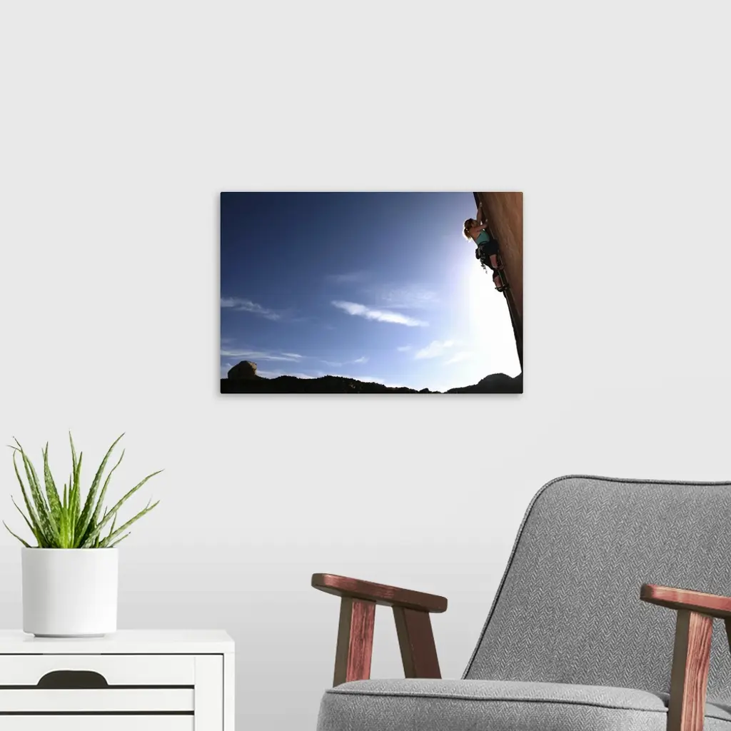 Climber tackles an overhanging wall on the cliffs of Indian Creek, near Moab, Utah wall art for home and office decor. Discover canvas art prints, photos, mural, big canvas art and framed wall art in GreatBigCanvas.com's varied collections.