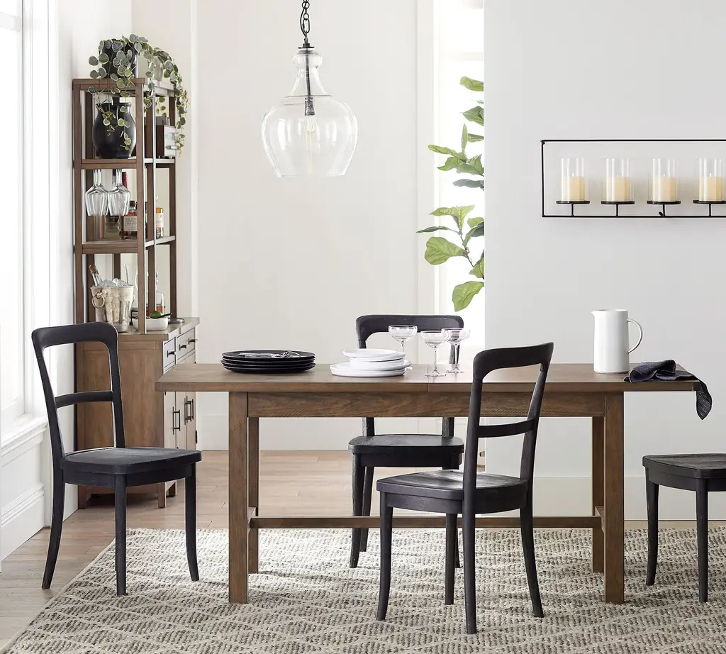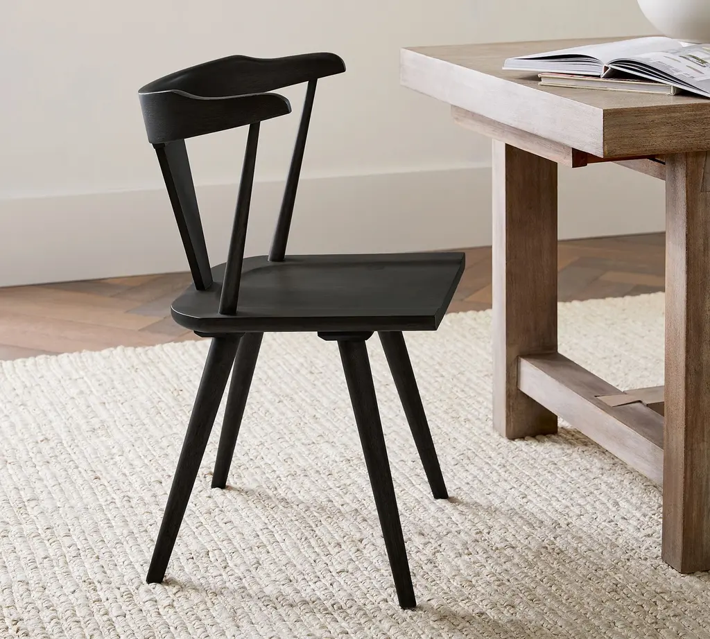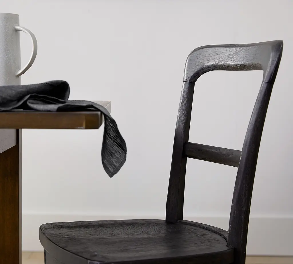 Small-space dining can still look good. The Cline Dining Chair is modeled after a vintage style, with simple curved details along the back. The rich color is easy to mix and match with other finishes.