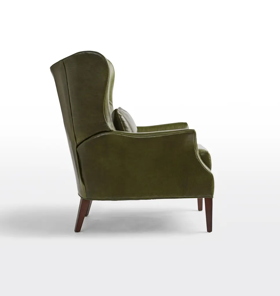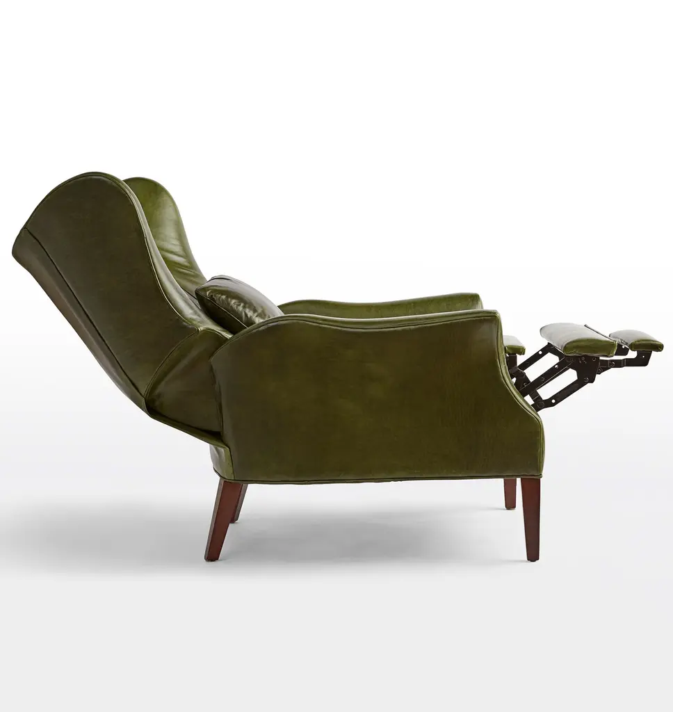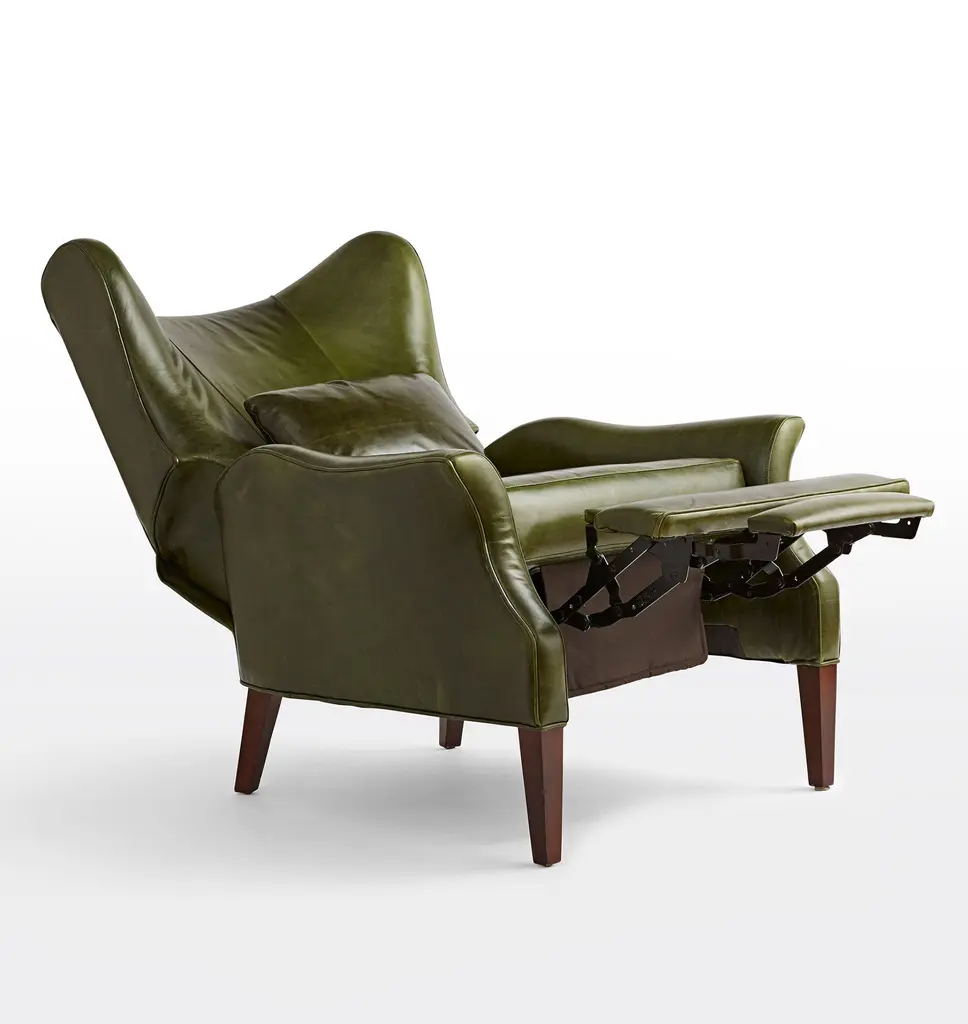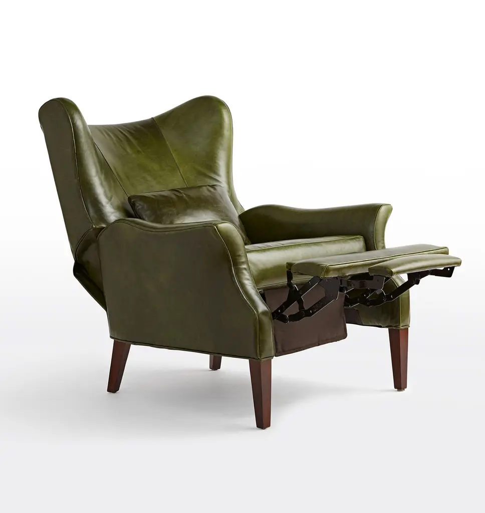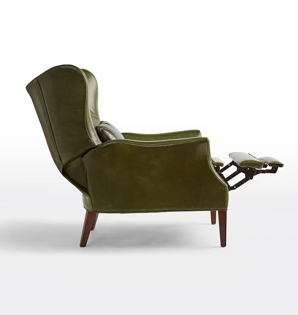 Now available as a premium manual recliner, the Clinton offers a modern update on the wingback chair, a style popularized in the 1700s and a living room staple ever since. This design features elegant leather upholstery and a matching accent pillow.