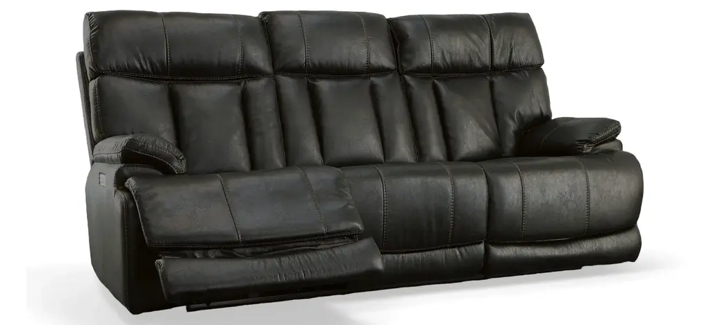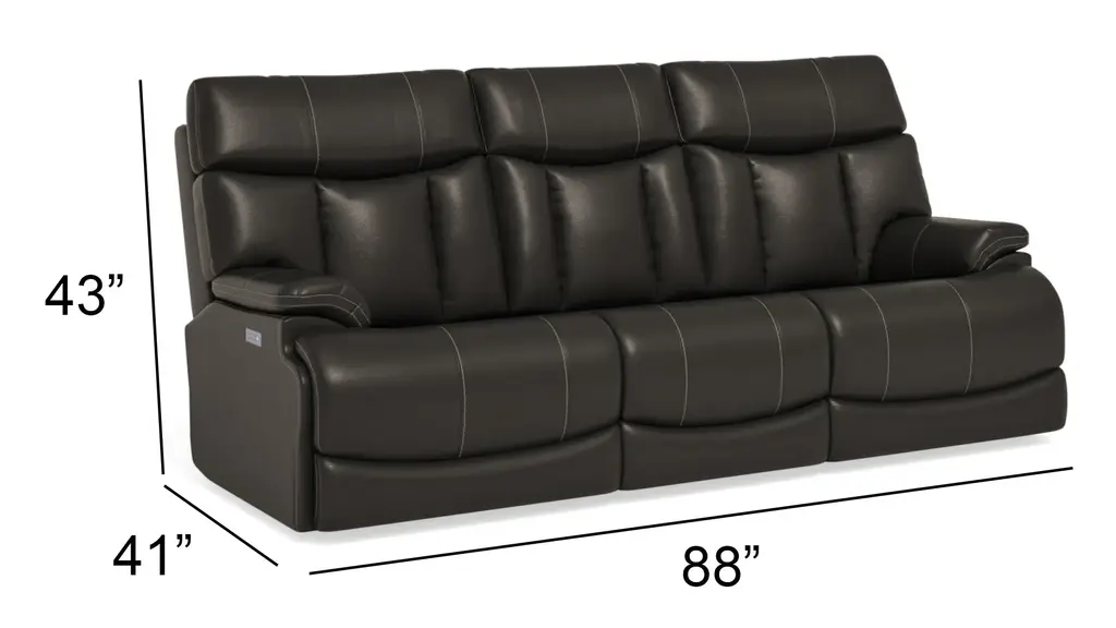 Make it a movie night with the family or stretch out and relax solo with the Clive Power Reclining Sofa. The pinnacle of ergonomic yet elegant design, Clive features pillow pad armrests and flat seat cushions, accented by heavy thread stitching and a channeled back cushion. Users can independently adjust the headrests, footrests and lumbar support with power controls built into both sides of the sofa. Easily shift from sitting to reclining to sleeping with a lay-flat mechanism, and keep your feet and legs elevated with a fully extended footrest that helps improve circulation. Our DualFlex Spring System ensures comfort built to last, while attached seat and back cushions with high-density foam stay supportive for the long haul. And with a USB port built into the power control, you can keep devices charged and close at hand.