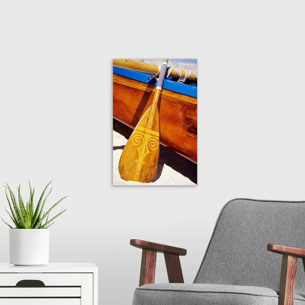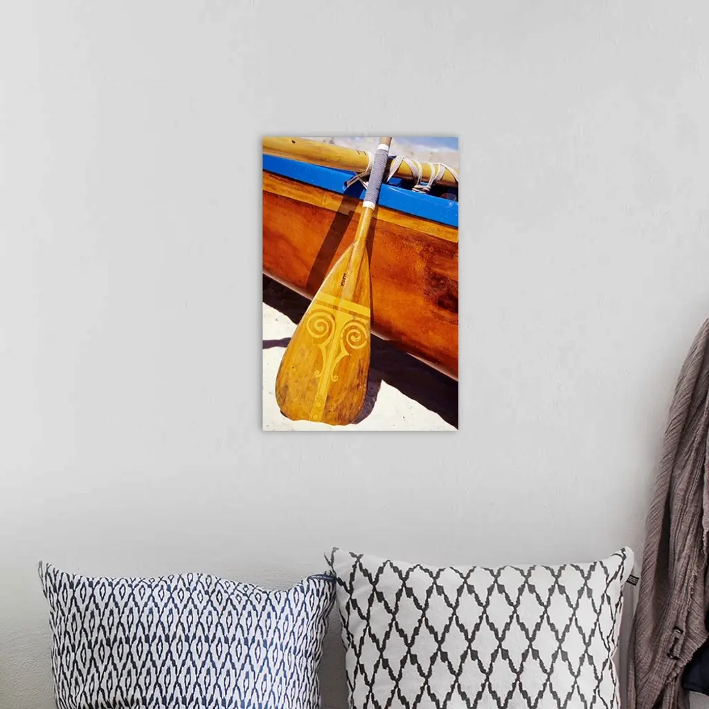Close-Up Detail Of Wooden Paddle And Outrigger Canoe On Beach wall art for home and office decor. Discover canvas art prints, photos, mural, big canvas art and framed wall art in GreatBigCanvas.com's varied collections.