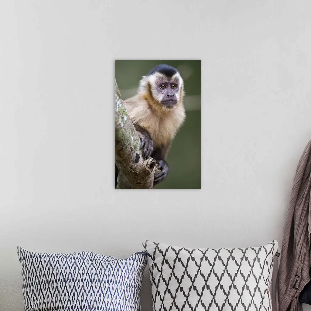 Close up of a Brown capuchin Cebus apella Three Brothers River Meeting of the Waters State Park Pantanal Wetlands Brazil wall art for home and office decor. Discover canvas art prints, photos, mural, big canvas art and framed wall art in GreatBigCanvas.com's varied collections.