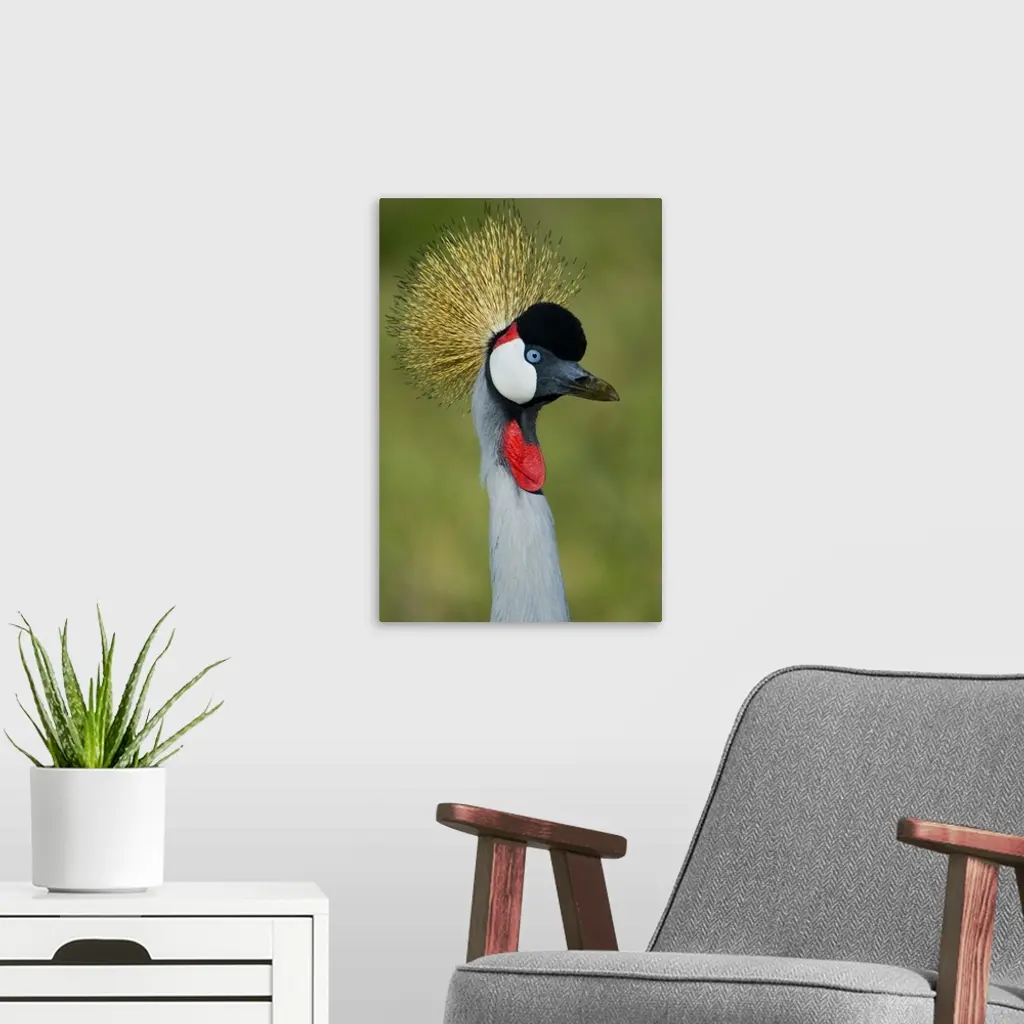 Close-up of a Grey Crowned crane, Ngorongoro Conservation Area, Arusha Region, Tanzania (Balearica regulorum) wall art for home and office decor. Discover canvas art prints, photos, mural, big canvas art and framed wall art in GreatBigCanvas.com's varied collections.